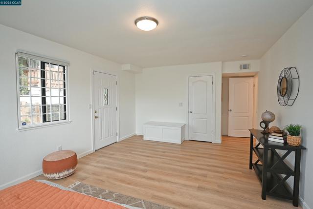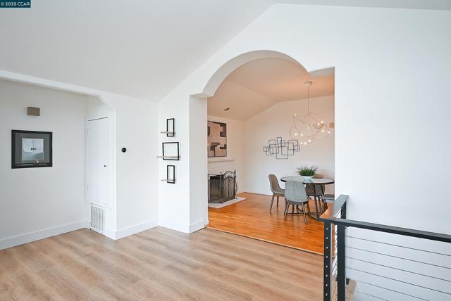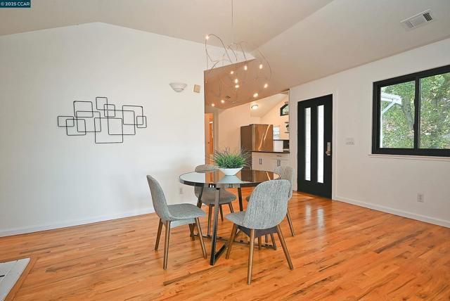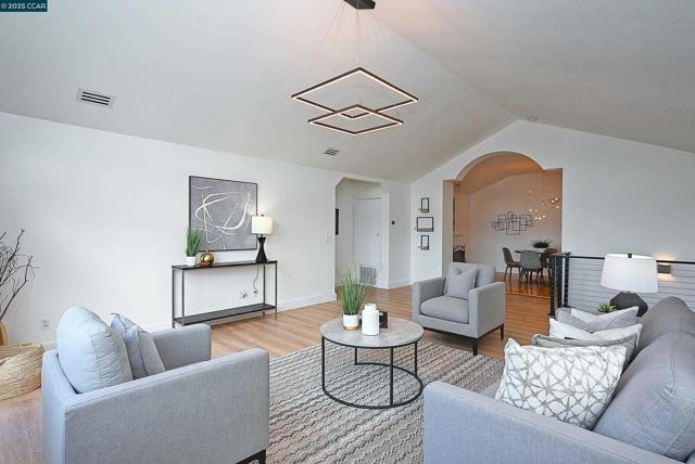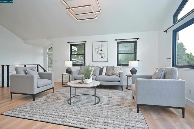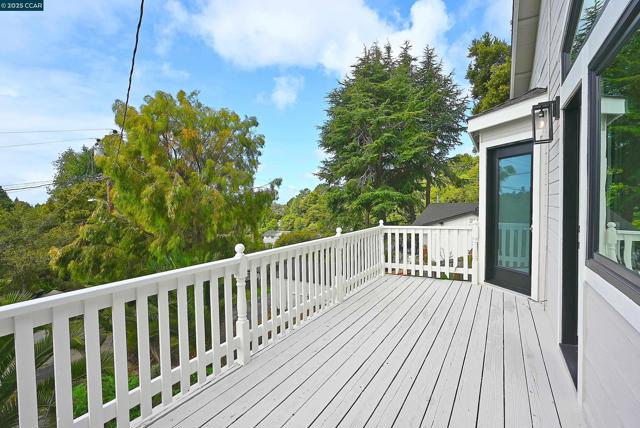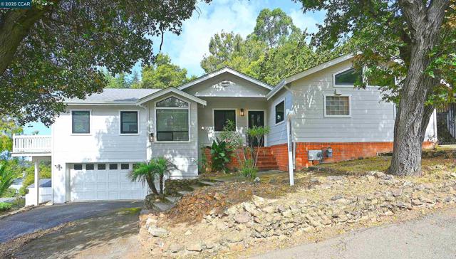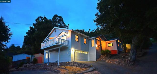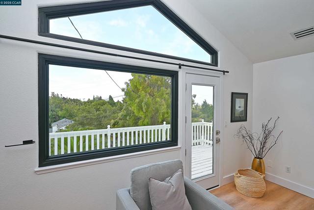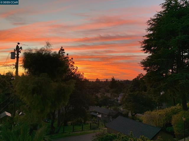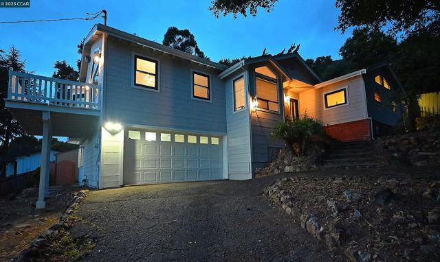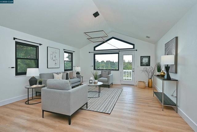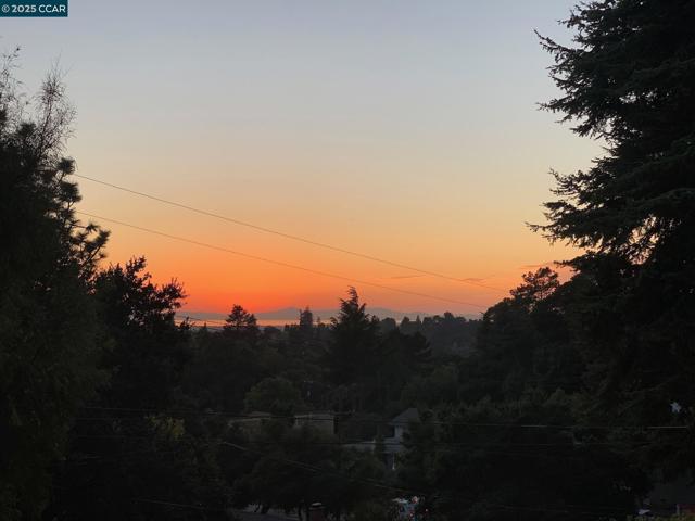 Transparent price! Situated on a quiet street among the trees this beautiful, custom, updated home awaits! Open and airy with amazing vaulted ceilings and a flowing floorplan, you’ll find ample living space. Main floor features include a large eat-in kitchen, dining area, office, full bath, primary bedroom suite with a large primary bathroom and a living room perfect for entertaining. Primary bedroom and living room both access a large front balcony where you can enjoy the gorgeous sunset and bay views! Lower level has an additional bedroom plus another full bathroom and laundry (ADU potential). Central heating and a/c. Most windows and doors as well as the roof and plumbing have been replaced recently. Outside features a back patio perfect for both relaxation and entertaining, as well as a large landscaped terraced yard. Circular driveway in front with ample parking further compliments the endless opportunities that abound. Just seconds from 580 this home leaves you feeling close enough to access anything in the city, but surrounded by nature and all that the Oakland Hills has to offer!