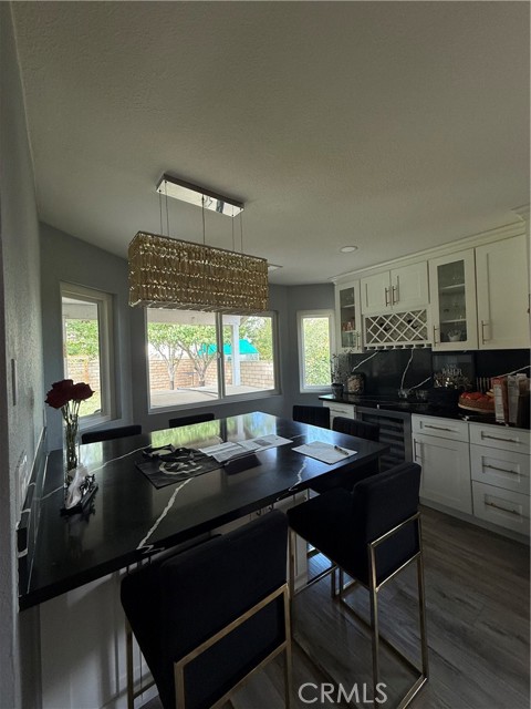 Step into a world of modern elegance with this beautifully appointed 3-bedroom, 2-bath residence located in the highly desirable Spring Valley Lake community. The home makes a grand first impression with a wrought iron entry door and a soaring main entry ceiling. Inside, you'll find beautiful laminate flooring flowing throughout the main living areas. The living room is bathed in natural light, thanks to two expansive windows, and features recessed lighting and a cozy fireplace, creating an inviting atmosphere perfect for relaxation or entertaining. The heart of the home is the stunning kitchen, featuring crisp white cabinetry accentuated by polished brass handles, and striking black granite-style countertops surrounding a generous granite island with a breakfast nook/dining area. Large windows ensure the kitchen also enjoys abundant natural light. Outside, the property is designed for enjoyment, offering a patio ideal for outdoor barbecuing and a grass backyard perfect for entertainment. Residents of this community enjoy a low Homeowners Association (HOA) fee and access to fantastic amenities, including a golf course, a private lake, and much more. This exceptional home offers both style and a coveted lifestyle.