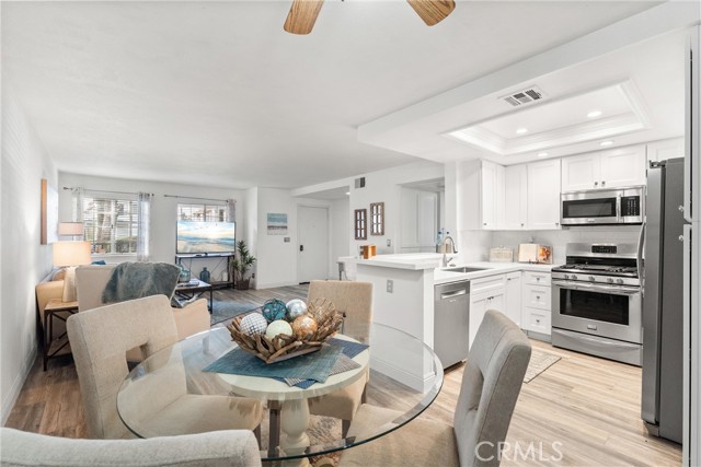 Welcome to Village Niguel Terrace II — Laguna Niguel Living at Its Best! Step into this beautifully upgraded *lower-level* condo, perfectly situated in the prestigious gated community of Village Niguel Terrace II, just minutes from beautiful laguna sandy beaches. With no stairs and a spacious open floor plan, this home offers comfort, convenience, and style in one perfect package. Enjoy a large private patio, ideal for morning coffee or evening relaxation. Inside, you’ll find fresh paint throughout, new luxury vinyl flooring, and a brand-new kitchen featuring white shaker cabinets, quartz countertops, and stainless steel appliances — the perfect blend of modern design and functionality. Both bedrooms are generously sized, providing plenty of space to unwind. Additional highlights include a detached garage, ample guest parking nearby, and close proximity to the community pool, spa, tennis courts, and private dog park. This well-maintained neighborhood is a standout — the HOA recently painted all the buildings, and it shows. The A/C and Water Heater are Newer and the unit comes with stylish newer Washer and Dryer. The location is unbeatable, with easy access to major shopping centers, freeways, and award-winning schools. If you’ve been searching for a move-in ready home in a clean, quiet, and beautifully maintained community, this one checks every box.