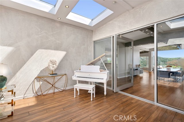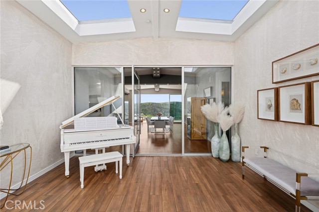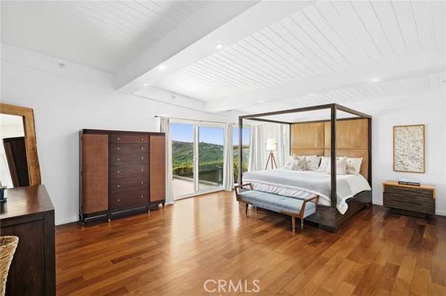 Discover coastal luxury at its finest with this stunning 5 bedroom, 4.5 bathroom contemporary residence in Laguna Beach. This breathtaking home seamlessly combines luxury with modern design, offering sweeping canyon and ocean views. Spanning 3,809 square feet, this architectural masterpiece blends indoor-outdoor living with elegance. Step through the grand foyer, illuminated by natural light, into an open-concept main level. Upon entry, you’re greeted by stunning Brazilian Walnut hardwood floors and high beamed ceilings creating an inviting ambiance. The gourmet kitchen is a chef’s dream featuring Caesarstone Quartz countertops, a commercial-grade gas stove and a Viking refrigerator. The main floor is home to the luxurious primary suite with its own private balcony, oversized walk-in closet, and a spa-like 5-piece ensuite bathroom. Two additional guest bedrooms and a full bath complete the main level, while the open living and dining areas are perfect for entertaining. Expansive glass sliders frame breathtaking vistas and ocean breezes into the main level. Downstairs, you’ll find two bedrooms complete with ensuite bathrooms and walk-in closets. Additionally, there is a versatile space that could serve as an office, gym, or additional living room. This level leads to a flat backyard designed for outdoor entertaining. The property also features a multi-car circular driveway with space for 5 additional cars and a two-car garage with direct access for added convenience. With its unmatched style, stunning views, and ideal location, this Laguna Beach gem offers the ultimate coastal lifestyle. Located just minutes from Laguna Beach’s pristine coastline, world-class dining, shopping, and entertainment, this home offers the perfect blend of tranquility and accessibility.