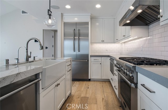 This beautifully appointed rear unit residence is located on one of the most desirable streets in the CDM Village. Thoughtfully designed and utilizing the finest materials this home provides a relaxed, peaceful and serene living experience. There are three separate decks including the roof, one off the primary bedroom and one off the main floor. A well equipped chef's kitchen includes a large island, oversized farm sink and stainless steel Thermador appliances. The living room has a custom linear gas fireplace, large built in flat screen with bi-fold glass sliders opening to the private patio area. Gorgeous wide planked hardwood floors are present throughout the entire home. Special features include: Savant home system, built in speakers, alarm system, hidden Murphy Bed in the secondary bedroom, Tesla EV charging unit in the garage, water filtration and programmable key pads on the front door and side gate. Enjoy the peaceful serenity of coastal living from this turn key CDM location.