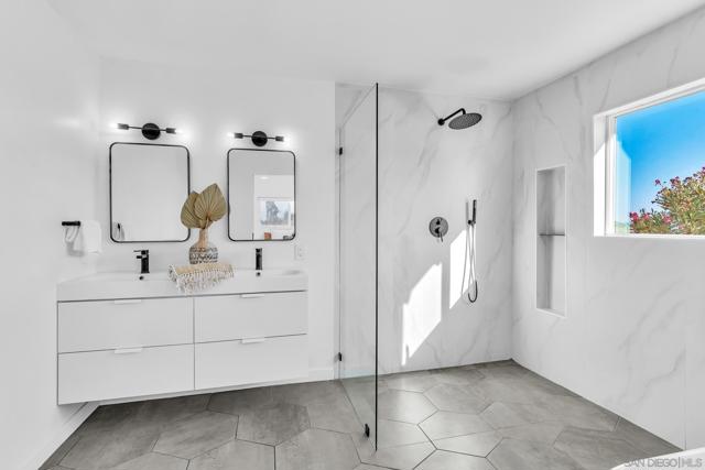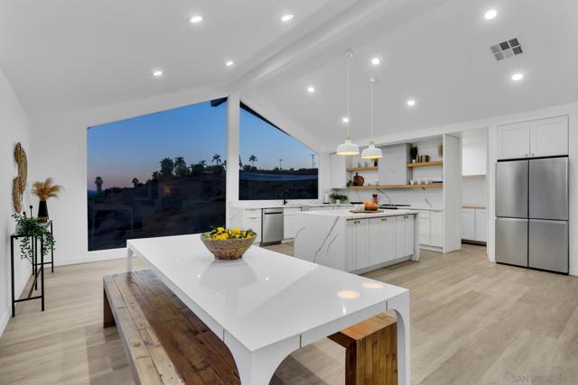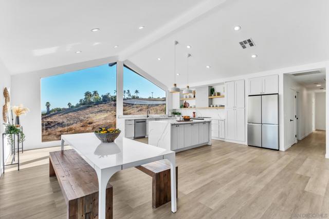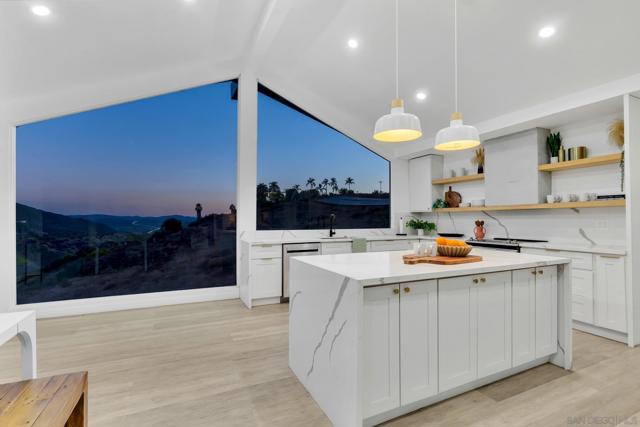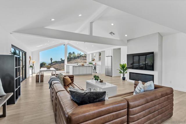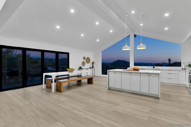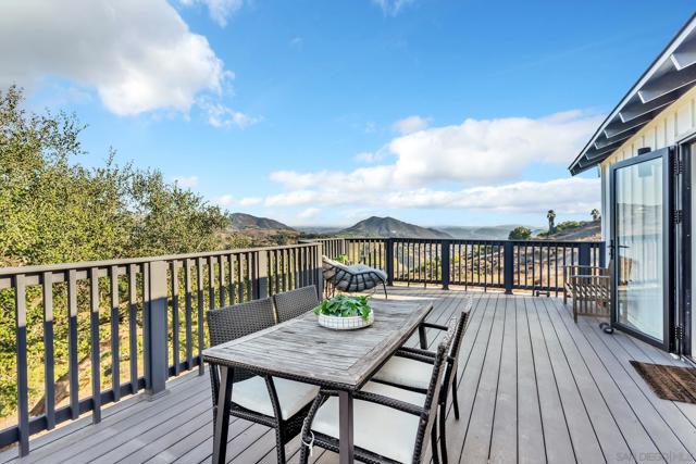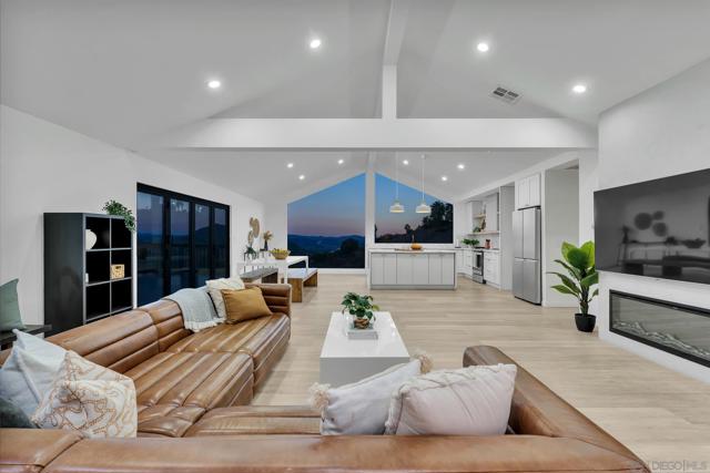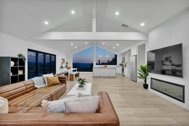 Welcome to your new home, a beautifully renovated 4-bedroom, 3-bathroom retreat nestled in the tranquil hills of Rainbow, Fallbrook. Set on nearly 2 acres of panoramic beauty, this home combines modern elegance with the peaceful charm of country living. Step inside to discover an open-concept layout filled with natural light and sweeping views from every angle. The expansive living area flows seamlessly into the dining space and a chef-inspired kitchen, complete with stainless steel appliances, abundant cabinetry, hidden pantry and generous counter space — all framed by La Cantina–style doors that open to stunning outdoor vistas and the attached deck. The primary suite is a private oasis featuring a spa-like en-suite bathroom with a soaking tub and an oversized walk-in shower. Every bathroom throughout the home showcases contemporary finishes and thoughtful design. Enjoy the convenience of two laundry areas, two garages (one attached and one detached), and ample parking and storage — perfect for hobbies, guests, or multi-generational living. Your pets will love it here too — the property is pet-friendly with fencing and plenty of space to roam. Whether you’re unwinding on the balcony with panoramic views, hosting under the stars, or simply soaking in the peaceful views, this property offers the ideal blend of modern comfort and rural tranquility.