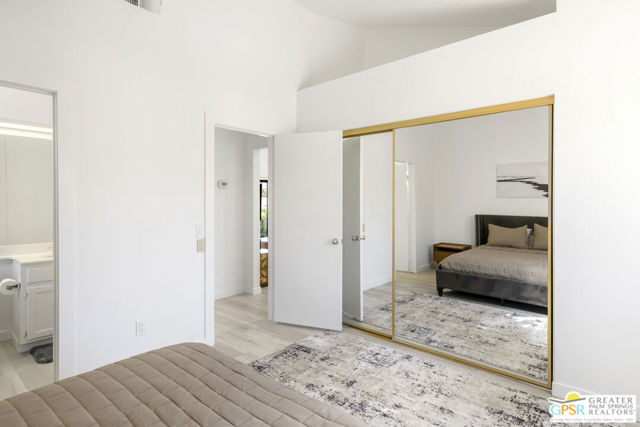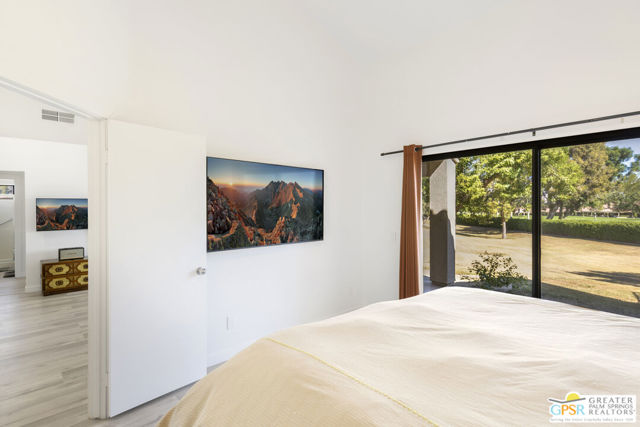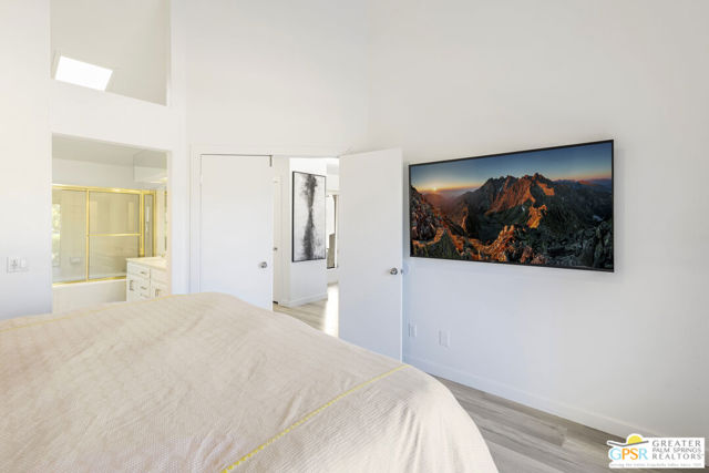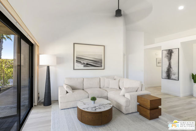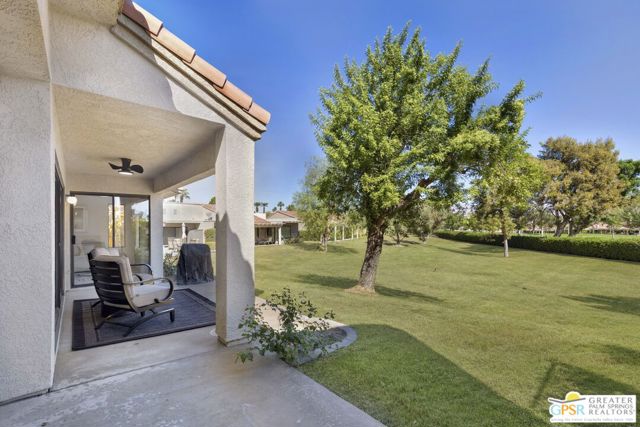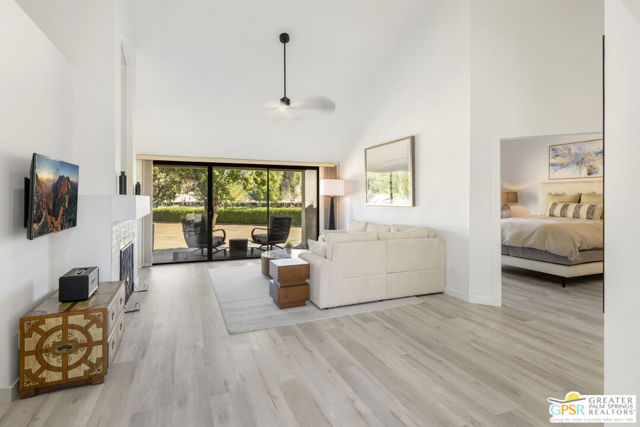 Turnkey End Unit with Green Belt & Mountain Views in The Resorter. Welcome to classic desert living in this beautifully updated 2-bedroom, 2-bath home located in the highly desirable Palm Desert Resort & Country Club (aka The Resorter). This move-in-ready end unit feels more like a detached home, with only one shared wall, no shared driveway, and a private setting that enhances comfort and tranquility. Step inside to discover a light and bright interior featuring vaulted ceilings, fresh paint, new laminate flooring, and a stylishly updated kitchen with luxury appliances. The spacious open-concept living area includes a cozy fireplace and large windows that frame stunning green belt and mountain views. Designed for privacy, the two bedrooms are thoughtfully positioned on opposite sides of the home. The primary suite offers a walk-in closet, a large ensuite bathroom, and more breathtaking views. Enjoy direct access to a two-car garage and an additional two-car driveway a rare find in the community. Offered furnished or unfurnished, this turnkey home is just a short stroll to the pool, pickle ball, tennis, bocce ball courts, golf course, pro shop, cafe, and clubhouse. The guard-gated community features multiple pools and spas and is only minutes away from El Paseo's renowned dining, shopping, and entertainment. Whether you're seeking a primary residence, vacation home, or short-term rental investment, this gem checks all the boxes.