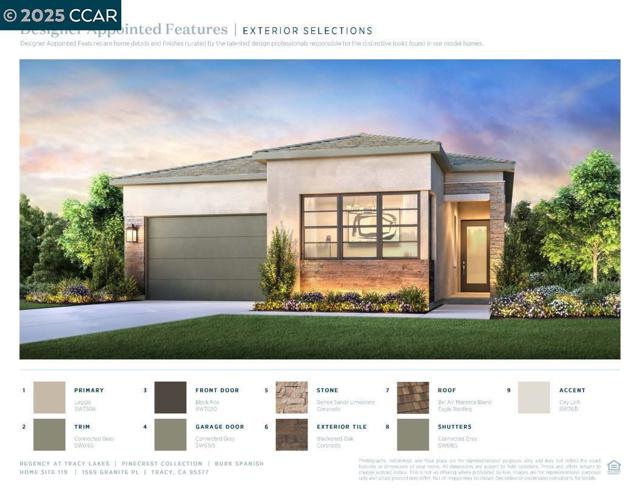 Toll Brothers newest 55+ Active adult gated community of single story homes, Regency at Tracy Lakes. With three picturesque lakes, this community offers a fishing dock, 1-acre garden and dog park. With a wealth of amenities, including a clubhouse, indoor and outdoor pools, cabanas, a yoga studio, fitness center, bocce ball, and pickleball courts, every day here is an opportunity for relaxation and recreation. Onsite lifestyle director ensures there’s always something to look forward to; from fitness classes to comedy shows and wine nights. The welcoming 10-foot ceiling foyer and luxury vinyl plank flooring flows immediately into the open-concept great room and casual dining area, with alluring views to the desirable luxury outdoor space. Enhancing the well-designed gourmet kitchen are a large center island with breakfast bar, shaker style modern cabinets, Energy Star KitchenAid stainless steel appliances, and quartz countertops. Highlights of the beautiful primary bedroom suite are an ample walk-in closet, and a primary bath with a dual-sink vanity, a large luxe shower with seat, and a private water closet. Additional highlights include a centrally located laundry and plenty of additional storage. (photos not of actual home, for marketing only) This home is a must see!