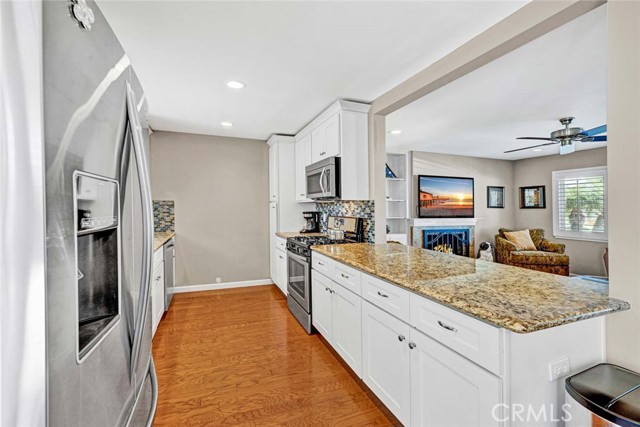 Welcome to this charming single-level, corner unit cottage in the sought-after 55+ community of Bay Cliff Village. Offering 1 bedroom, 1 bathroom, and approximately 1,000 square feet, this home blends coastal charm with comfortable living. Step inside to an inviting open layout featuring hardwood floors, a cozy fireplace, and a spacious living room ideal for relaxing or entertaining. The kitchen, complete with white shaker cabinets, granite countertops, stainless steel appliances, and a quaint dining nook, overlooks the living area, perfect for hosting guests. The generous bedroom is accompanied by a beautifully updated bathroom with granite counters and a walk-in shower. Outside, enjoy your morning coffee and cool ocean breeze on the private enclosed patio with direct access to your one-car garage. Additional highlights include in-unit, full-size washer and dryer, and central air conditioning. Bay Cliff Village offers peaceful surroundings with meandering paths, well-manicured green spaces, and inviting areas to sit and unwind. Residents enjoy a low-maintenance lifestyle with HOA coverage for exterior upkeep, landscaping, water, trash, and access to the clubhouse for community gatherings. Located just moments from San Clemente’s stunning beaches, scenic trails, and a variety of local shops and dining, this is coastal living at its finest.