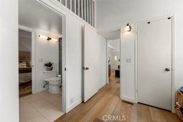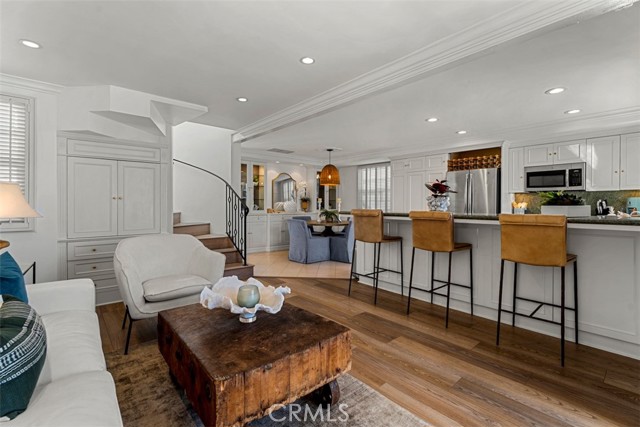 The best-priced opportunity on Balboa Island! Welcome to 211 Pearl Avenue, a beautifully remodeled Cape Cod–style duplex ideally located on the quiet end of Balboa Island. Blending timeless coastal charm with modern luxury, this home offers two distinct living spaces—perfect for extended family, guests, or rental income. The main residence features three bedrooms and three baths across two levels. The first floor offers an inviting elevated front patio, a fireplace-warmed living room, modern kitchen with breakfast bar, dining area, and a sunlit bedroom with private patio. Upstairs, the primary suite boasts cathedral beamed ceilings, a walk-in closet, fireplace, and private balcony, along with a guest bedroom featuring an en-suite bath. The rear unit offers a spacious one-bedroom layout with a large closet, loft area, and oversized bathroom. It also includes open beam ceilings, a bright open floor plan, an updated kitchen with eating bar, dining area, balcony, and in-unit laundry. Parking is a rare find with space for four vehicles—two in the garage and two tandem spaces. Positioned on the desirable 200 block with underground utilities and assessment fully paid, this property embodies the best of Southern California coastal living—peaceful, picturesque, and just moments from the waterfront, boutiques, and cafés that make Balboa Island truly special.