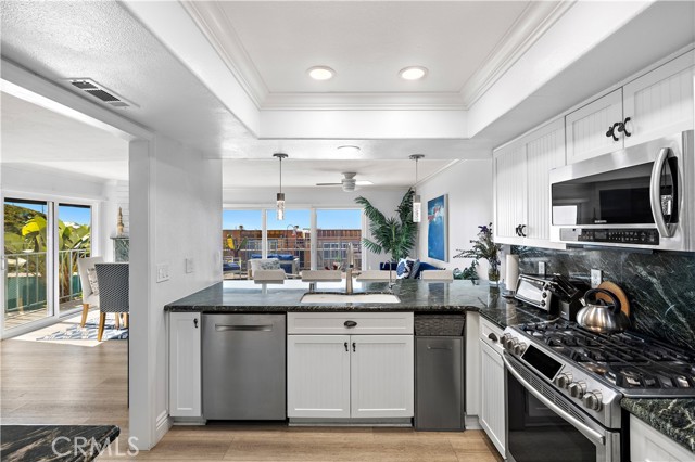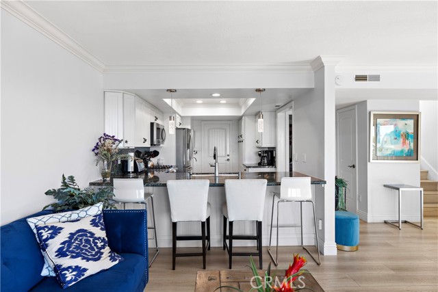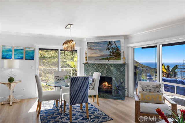 Discover your dream coastal retreat in this exceptional corner unit of the highly sought-after Dana Bluffs Community. Immerse yourself in breathtaking views of the ocean, Dana Point Harbor, Doheny Beach, and Catalina Island. This luxurious home invites you to a world of tranquility and elegance. Step into an elegantly designed open floor plan that seamlessly connects the living room, dining area, and kitchen. The living room exudes comfort and style with its custom granite fireplace, setting a sophisticated tone. The adjacent dining area provides a welcoming space for cherished meals, while the kitchen is a chef’s dream, equipped with stainless steel appliances, Kraftmaid cabinets, and custom granite countertops that harmonize beautifully with the fireplace. The home’s new luxury vinyl flooring adds a touch of durability and elegance throughout. Unique touches like the custom etched glass window with wave designs on the landing infuse the space with a coastal charm. Upstairs, two spacious master suites await, each with ample storage in its large mirrored closets. The primary master suite is a true haven, opening onto a deck with panoramic views and an electric awning, where you can relax and unwind to the soothing sounds of the waves. Practicality is ensured with the two-car garage, featuring ample storage cabinets, a new water heater, a washer and dryer, and a freshly epoxy-coated floor. The Dana Bluffs Community offers exclusive amenities, including a heated pool, spa, tennis and pickleball courts, and a clubhouse with breathtaking coastal views. Just minutes from local beaches, the harbor, restaurants, and shopping, this home embodies the coveted beach lifestyle. Experience resort living every day in this breathtaking Dana Bluffs residence. EXCITING NEWS!! DANA BLUFFS HAS COMMENCED ITS COMMUNITY WIDE RENOVATION. THIS IS NOT ONLY GOING TO ENHANCE THE LOOK OF THE COMMUNITY BUT IT WILL BRING SOARING VALUES. THERE IS A REASON WHY ALL OF THE INVENTORY IN DANA BLUFFS HAS BEEN PURCHASED. COME GRAB THE LAST CURRENT OPPORTUNITY BEFORE ITS TOO LATE.