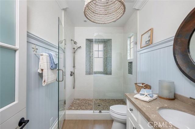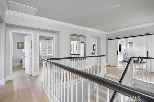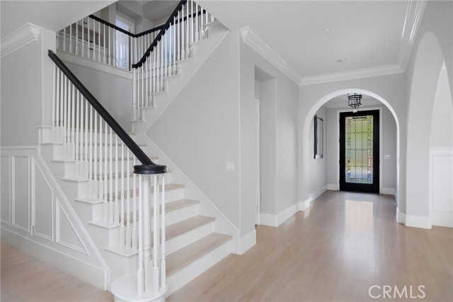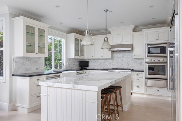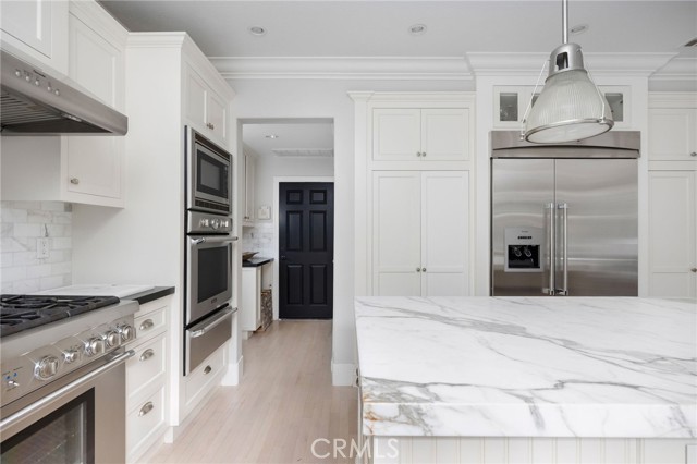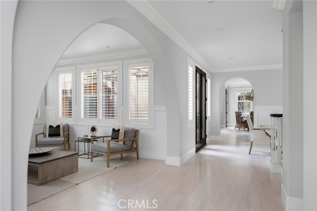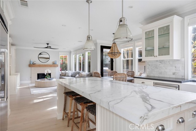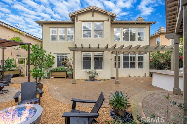 Beautiful Residence in Compass Pointe, Forster Highlands. Nestled on a quiet, single-loaded street in the serene Compass Pointe community, this stunning home offers approximately 3,600 sq. ft. of bright, spacious living. Designed for comfort and style, it features five bedrooms, a large bonus room, and four bathrooms in a versatile, family-friendly layout. The entry welcomes you with fresh landscaping, a charming front porch shaded by an olive tree, and peaceful hill views. Inside, maple wood floors and an open-concept design create a seamless flow between living spaces. The remodeled gourmet kitchen showcases white cabinetry, dual pantries, a marble backsplash, black granite countertops, and a nine-foot Carrera gold marble island with seating and storage. High-end Thermador appliances—including dual ovens, a built-in refrigerator, microwave, warming drawer, and two Bosch dishwashers—complete this impressive space. The kitchen opens to a bright living room with a gas fireplace and casual dining nook, while the formal dining room opens to a private courtyard through French doors. A spacious family room filled with natural light features a second fireplace, perfect for gatherings or relaxation. A downstairs bedroom and nearby bath with a walk-in shower provide an ideal setup for guests or multigenerational living. Upstairs, the primary suite serves as a private retreat with a lounge area, soaking tub, walk-in shower, dual sinks, walk-in closet, and private water closet. Three additional bedrooms and a large bonus room with sliding barn doors complete the upper level, which also includes two full bathrooms for added convenience. The entertainer’s backyard is a true outdoor oasis, featuring a covered patio with built-in TV and heaters, an outdoor fireplace, and a large island bar with built-in BBQ and mini-fridge—perfect for hosting gatherings. A fire pit adds warmth and ambiance, and lemon and lime trees enhance the setting. Additional highlights include a laundry room with farmhouse sink, solar panels, two new A/C units, new heating system, surround sound throughout, and a three-car garage with the tandem space converted into a large storage area. Residents of Forster Highlands enjoy access to pools, Jacuzzis, and neighborhood park surrounded by rolling hills, open spaces, and scenic hiking trails. Conveniently located near top-rated schools and world-class beaches, this home offers the perfect blend of luxury, comfort, and Southern California living.