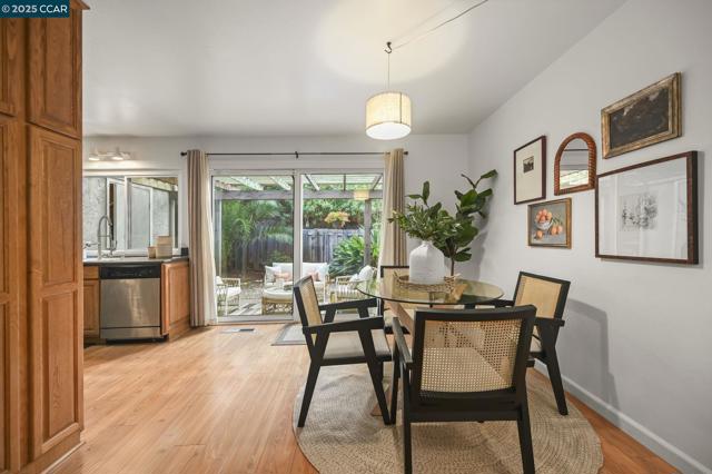 This lovely townhome, meticulously maintained and owned by the same family since 1992, is located in the highly desirable Rudgear Estates neighborhood. The moment you walk through the front door, you'll love the expansive living room -- which includes a versatile nook perfect for your favorite desk/table setup. The well-designed kitchen boasts custom cabinetry, complete with pull-out shelves that serve as a de facto pantry ... and the connected dining area flows seamlessly out to a peaceful backyard patio, ideal for outdoor entertaining and relaxation. The large primary bedroom features a vast walk-in closet, and the massive second bedroom provides invaluable flexibility. Additional highlights include a deep one-car garage with ample storage space, along with a long carport and driveway that can accommodate multiple vehicles. Truly a wonderful place to call home in a sought-after community!