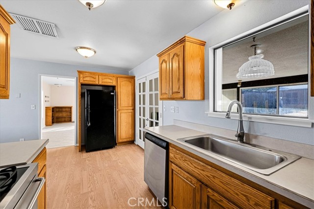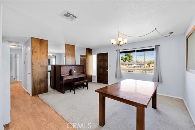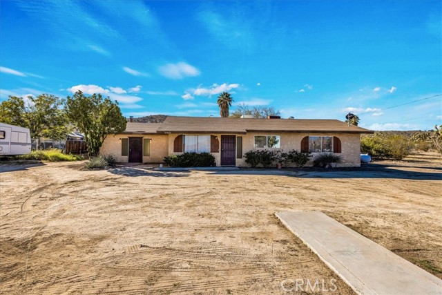 Looking for a lovely desert home or investment property? Look no further! This centrally located home is nicely situated on approximately .32 acres of land with beautiful desert & mountain views. Featuring nearly 1,500 sqft of living space, this home offers 3 bedrooms, 2 bathroom PLUS a large bonus room/den complete with a charming free-standing fireplace. The kitchen boasts warm wood-like flooring, stainless steel appliances and solid oak cabinetry. All 3 bedrooms have carpet flooring and the primary bedroom adorns an ensuite bathroom with a walk-in shower. This home also has a detached garage (which has been converted into a music/sound studio), a large covered patio, fully fenced yard and plenty of space to entertain or relax around a firepit on a starry desert night. This property has been a successful long-term rental for the owners and would make for a great starter-home or continued investment property. Come take a look and let this homes charming allure do the rest!