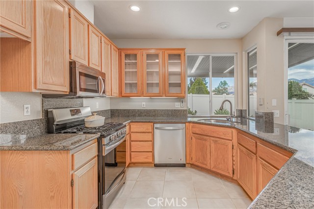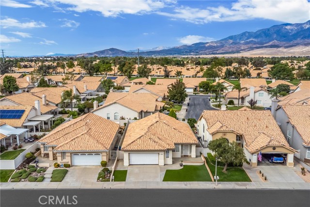 A lovely Jasmine is now for sale in the amazing community of Sun Lakes Country Club. This 1785 square foot home features 2 bedrooms, 2 bath, living room, dining room, kitchen, family room area, bonus room, and an indoor laundry room. As you enter this spacious home, you are immediately greeted by a living and dining room that is sure to become a popular gathering place. The bonus room can be used for an office, den, craft room or anything your heart desires. The open kitchen with ample work area, granite counter top, and splendid views of the San Gorgonio mountains are sure to make any cook happy as a clam. The kitchen overlooks the family room and eating area, making entertaining a breeze. The primary suite offers a walk-in closet, sliding door to the patio area and a private dressing/bath area. The guest bedroom is roomy and sure to comfort any guest for any length of time. An indoor laundry room with plenty of cabinet space is a huge plus and the walk-in pantry has many benefits for both convenience and home organization. The attached 2 car garage features ample space for storage and/or a golf cart. The front yard is almost maintenance fee with turf grass which is cost effective. The backyard showcases beautiful views, a couple of fruit trees and a durable Alumawood patio cover - perfect for relaxing or entertaining outdoors. Sun Lakes Country Club is one of the most affordable 55+ active adult communities in Southern California.