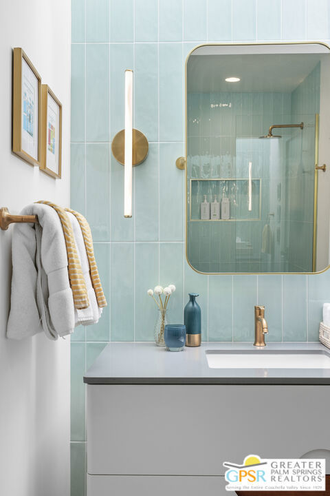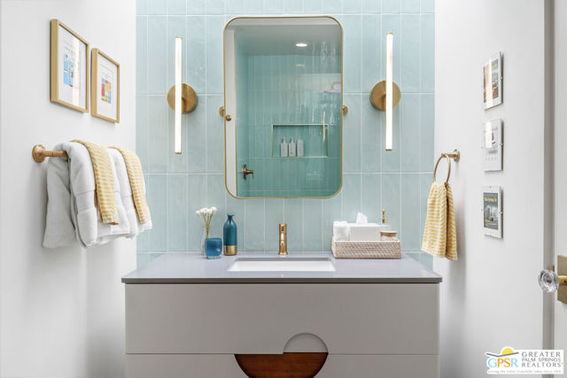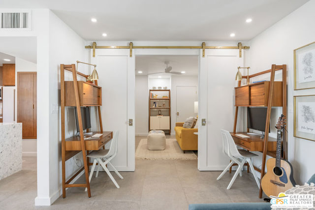 Welcome to mid-century living in the iconic Sandcliff Community, where vintage charm meets modern luxury. This fully remodeled condo was transformed top to bottom in 2023, blending historical character with today's must-have upgrades. Inside you'll find a brand new tankless hot water heater, all-new eco-protective windows and sliders that frame stunning mountain views, and high-end appliances throughout, including MCM-style GE Cafe appliances in the kitchen. Fresh flooring, beautifully updated kitchen and bathrooms, and sleek hardware elevate the space while preserving its authentic mid-century character. The versatile den easily converts into a second bedroom or guest room, and three private patios offer the perfect spots for morning coffee, sunset cocktails, or simply enjoying the desert atmosphere. Located in South Palm Springs with two community pools and spas, you're minutes from world-class hiking, shopping, and dining. This property is listed on the National Historic Registry and as a Class 1 Historic District in the City of Palm Springs, and benefits from an active Mills Act Contract with significantly reduced property taxes. As an added bonus, this home is offered fully furnished to the buyer with the right offer. Schedule your private tour and discover why Sandcliff is the perfect place to call home.