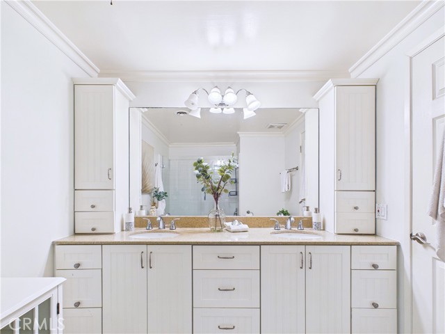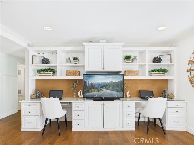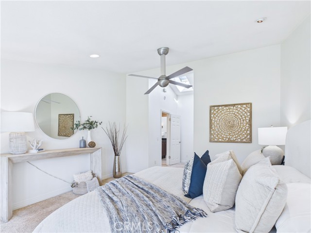 Enjoy living on the largest, premier greenbelt in The Bluffs. This end unit, a popular floor plan E has the primary bedroom on the main floor, an open concept kitchen & family room that has been updated with stainless built-ins and large center island. During renovation, the kitchen sink was moved to the wall overlooking the green belt, making for a much more spacious and open kitchen space and optimal enjoyment of soaring greenbelt views. The main floor primary suite features a spacious ensuite bath with 2 large walk-in closets, double sinks, and soaking tub. The thoughtfully designed floor plan features 2 over-sized additional bedrooms, large laundry utility room, and bonus room. Additionally, this home has been expanded to feature a formal dining room unique to this home. Further features include a private driveway not shared with neighbors, kitchen desk area, built in storage and mudroom off the garage, making this home an exceptional opportunity in Eastbluff. With outdoor living space on both levels, this home is perfect for those who love to entertain. The expansive patio and view deck off the living room look out over the beautiful greenbelt and make for seamless indoor-outdoor living. Live amidst miles of green lush lawns & gardens - expansive greenbelts and paths like these are highly unique in coastal Orange County. Additionally, you have a fountain, reflection pool, and are just a short walk to the Back Bay. Another outstanding and sought after feature of this location is that K-12 schools are all walkable from the home. Come make yourself at home.