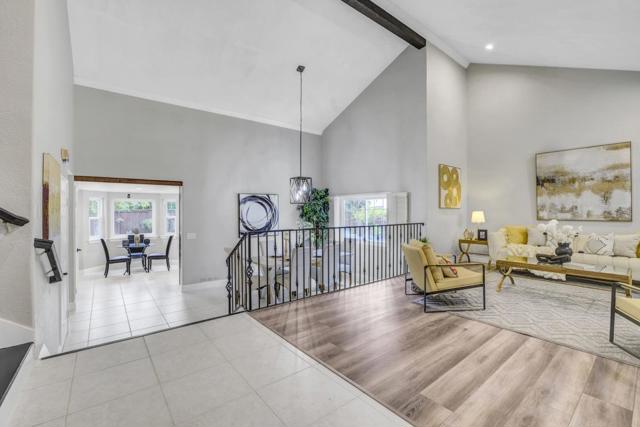 Quail Run gem on a quiet cul-de-sac. This beautifully upgraded home features a main-level bedroom and full bath for guests or multi-generational living. All three baths are remodeled with modern finishes. The kitchen boasts stainless steel appliances and cherry wood cabinetry, while the family room offers a fully electric fireplace and radiant heated floors. The primary suite includes private balcony access. Recent upgrades include fresh paint, luxury vinyl plank flooring upstairs, ceramic tile downstairs, dual-pane windows, and a water heater. The 3-car garage features a sink for convenience. The quality tile roof adds value to the house. The entertainer's backyard has a newer patio and deck, lush landscaping, and potential for an ADU. Enjoy low HOA dues with access to community amenities, including 3 tennis courts, a pool, jacuzzi, and clubhouse. Walk to Alameda Creek Trail for access to Coyote Hills and Quarry Lakes, with easy freeway access. This home offers a perfect blend of comfort, convenience, and style.