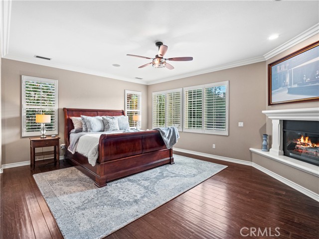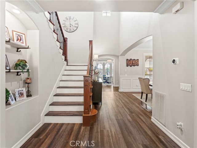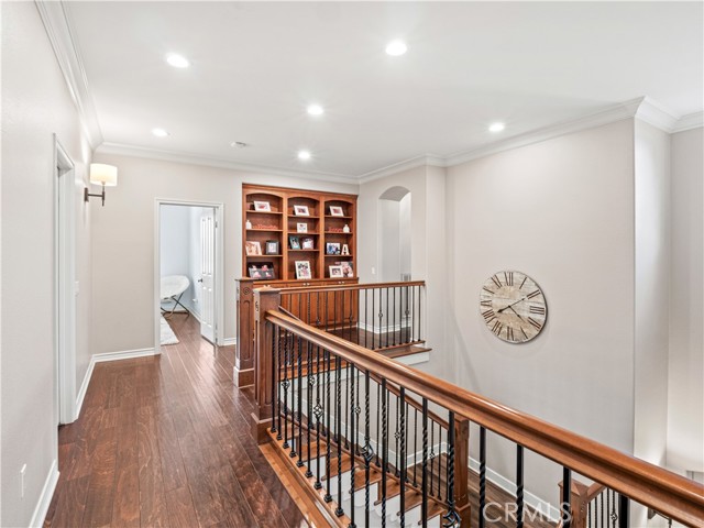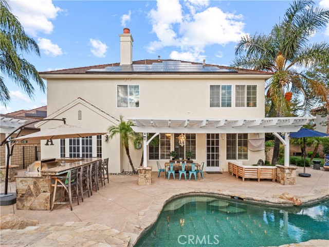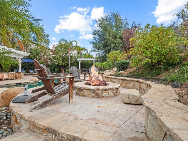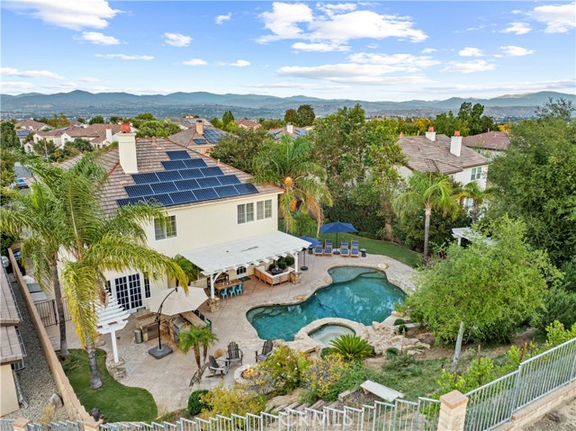 Luxurious Westridge Pool Home, Located on a cul-de-sac with over 14,000 SQFT of space, this stunning 5-bedroom, 4.5-bath home offers nearly 4,000 SQFT of upgraded living with $200K in improvements and solar! Step inside to find a double door entry formal office with front yard views and an elegant dining room adorned with wainscoting, designer fixtures and french doors leading to the side yard. The chef’s eat-in kitchen boasts a massive island, quartz countertops, upgraded backsplash, Viking appliances including double ovens and warming drawer, a walk-in pantry, built-in desk, and breakfast nook overlooking the backyard. The kitchen opens to the spacious living room featuring a striking stone accent wall with fireplace, mantel, hearth seating, and a custom-built entertainment center. The first level also offers a powder room, mudroom/laundry area, and a large bedroom with ensuite bathroom and French doors leading to the yard—ideal for guests or multi-gen living. Upstairs, a grand staircase leads to a luxurious primary suite with a cozy fireplace and spa-like ensuite complete with soaking tub, dual sinks, vanity, glass-enclosed walk-in shower with seating, and large walk-in closet. Additional bedrooms include one with an ensuite bath, two with a Jack-and-Jill bathroom, and a versatile bonus room with built-in desks, storage, and a private balcony. Interior highlights include crown molding, upgraded flooring, shutters throughout, surround sound, new water heater, and upgraded lighting. The backyard is an entertainer’s paradise, featuring a heated pebble tech pool and spa with waterfalls and baja shelf, multiple seating areas, built-in firepit, outdoor kitchen, pergola-covered patio, lush lawn, and designer landscaping with upgraded lighting. Finished with a 3-car tandem garage and oversized driveway, this home sits within the prestigious Westridge community offering resort-style amenities including multiple pools, tennis courts, and TPC golf course. Conveniently located near award-winning schools Oak Hills Elementary, Rancho Pico Junior High and West Ranch High School, parks, restaurants, and shopping with easy freeway access. This home is a MUST see!!!