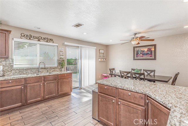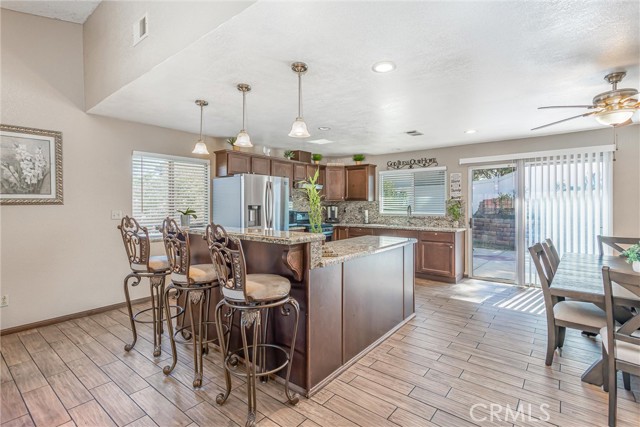 Welcome to this beautiful single-story home in highly desirable Jurupa Valley! Vaulted ceilings create an airy, spacious feel throughout. The gourmet kitchen boasts granite countertops, stylish backsplash, a huge island, and ample cabinetry—all flowing seamlessly into the family room for effortless entertaining. Three large bedrooms include a generous master suite overlooking the backyard retreat. Speaking of the backyard—it's an absolute paradise! Enjoy an abundance of fruit trees, expansive green grass, patio space, dog run, and side yard access ideal for RV storage. The 3-car garage provides extra space for all your vehicles and toys. This one won't last—come see it today!