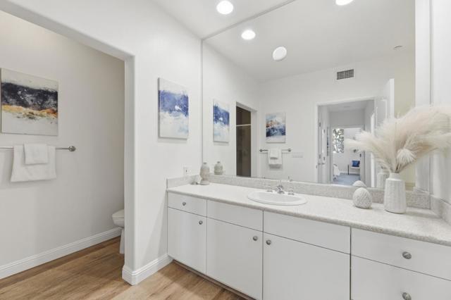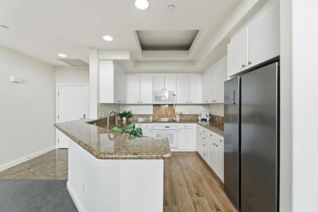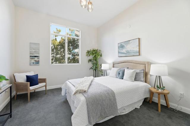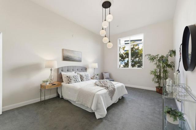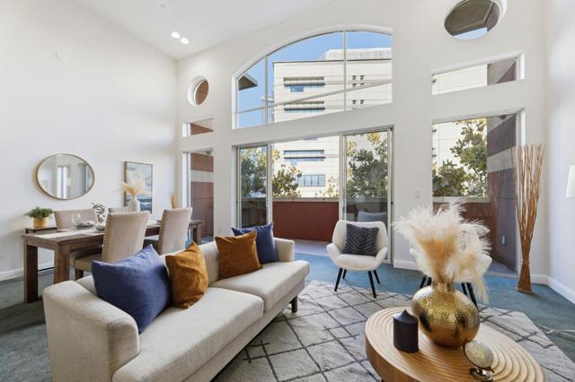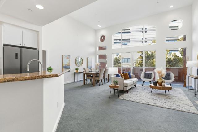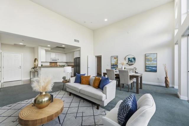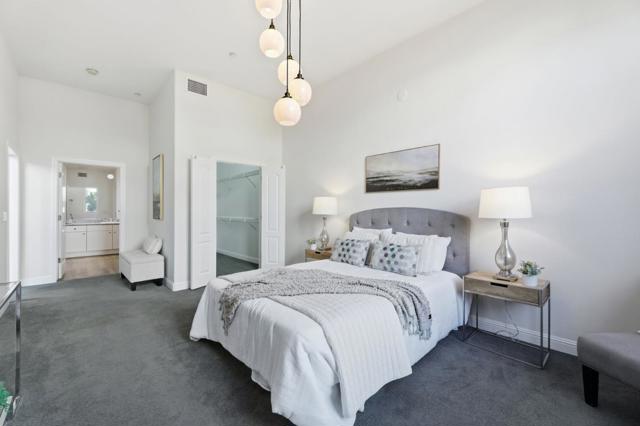 Welcome home! This 2 bed, 2 bath, 1,622 sq ft penthouse condo epitomizes luxury and convenience at its best. 15' vaulted ceilings and expansive windows bathe every corner in glorious natural sunlight. The primary suite is a haven of relaxation, complete with a generous walk-in closet and a spa-like bathroom retreat featuring a custom stall shower and an oversized tub. Unwind and soak your worries away in unparalleled luxury. The junior suite is perfect with multiple options for residents, guests, visiting parents, or a generous office space! The open concept kitchen boasts granite countertops and ample pantry space. The extended kitchen peninsula offers additional counter space, perfect for culinary creations or casual dining. Enjoy the private gym, pool and spa, and the social room at your leisure! Unwind on your private outdoor balcony, and benefit from the convenience of 2 parking spaces and 2 storage units!. Situated in a vibrant neighborhood, you'll find restaurants, theaters, San Pedro Square, SAP Center, and more right at your doorstep. Plus, enjoy easy access to Silicon Valley's leading companies and amenities, making this home the perfect blend of luxury and location. Your upscale private oasis in the heart of the the Bay Area awaits you!