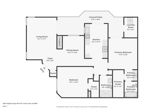 Welcome to The Hills of Yorba Linda! This beautifully maintained single-level, downstairs condominium offers the perfect balance of comfort and style in a private, serene location. The spacious 2-bedroom, 2-bath floor plan features large bedrooms and a bright, open living space that feels airy and inviting. The primary suite includes a generous walk-in closet, a remodeled en-suite bath, and direct access to the balcony—perfect for enjoying your morning coffee or evening breeze. The secondary bedroom offers flexibility for family, guests, or a home office. The kitchen boasts timeless white cabinetry, quartz countertops, and black/stainless appliances, seamlessly connecting to the dining area and expansive living room—ideal for both everyday living and entertaining. Wood-laminate flooring flows throughout, adding warmth and easy maintenance. The community offers resort-style amenities, including pools, spas, tennis courts, and a fitness center. Surrounded by scenic hiking trails and just moments from top-rated schools, shopping, dining, and freeway access, this home blends tranquility with everyday convenience. Easy access to the 91 and 241 freeway, conveniently located to Irvine and Corona.