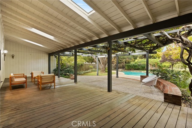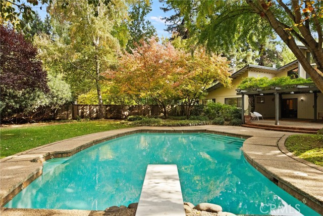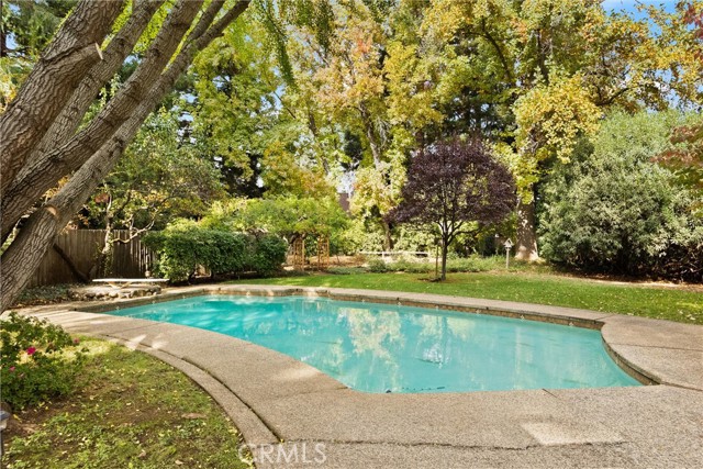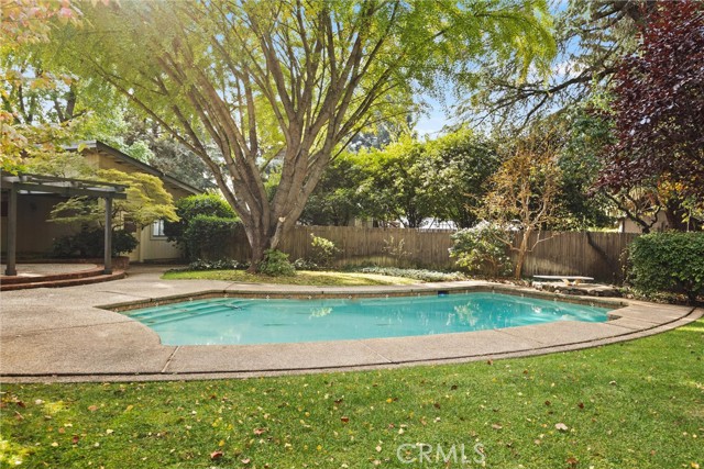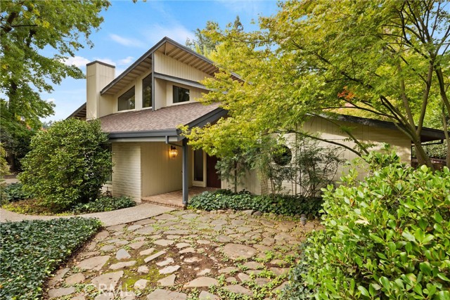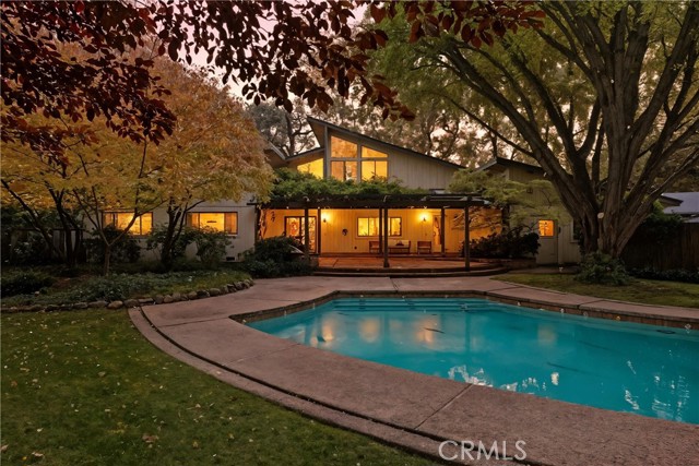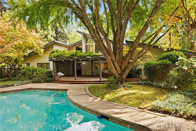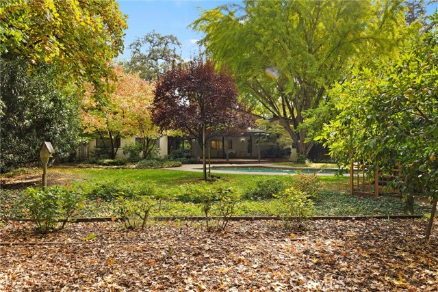 One Of A Kind & Custom Designed by Lenn Goldmann! This unique 3 bedroom 2.5 bath home sits on over ½ acre and is situated on the beautiful tree lined Bidwell Avenue! With its serene setting, high ceilings, tons of windows and skylights throughout allowing for great natural light, and custom design & features - this home will not last long! This home features a beautiful brick entry and brick fireplace in the living room, spacious kitchen with tons of storage and kitchen island, indoor laundry with an extra refrigerator and access to the backyard, spacious guest rooms with large closets, a bonus room/loft area with storage - perfect for a play area or office with views of the backyard, and additional attic storage. The primary suite has a skylight, classic circular window, a separate tub and shower, dual sinks, and 3 closets! Additionally there is a family room with built-ins, a wood stove, and a slider leading to the large covered deck. The backyard is truly a gem and perfect for entertaining with an in-ground pool, pergola with wisteria, tons of trees including Ginkgo, apricot, pomegranate, citrus, dogwood, Japanese maples and more! There is also boat/trailer parking, a shed, 2 car garage with one side tandem and a workshop space, a central vacuum and more - this home is a must see! Don’t miss the opportunity to own this incredible home and property priced at $829,000!