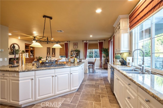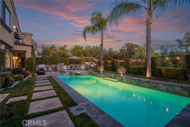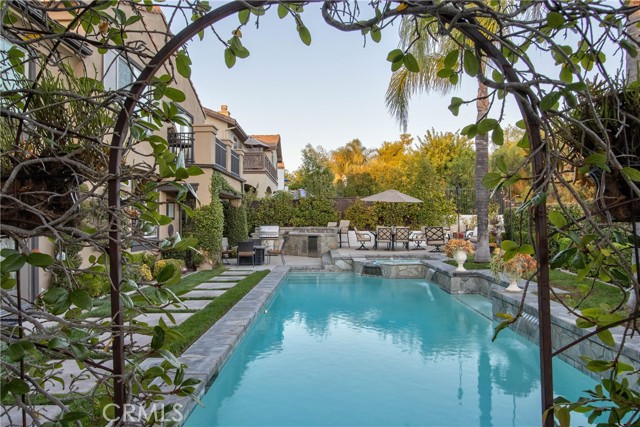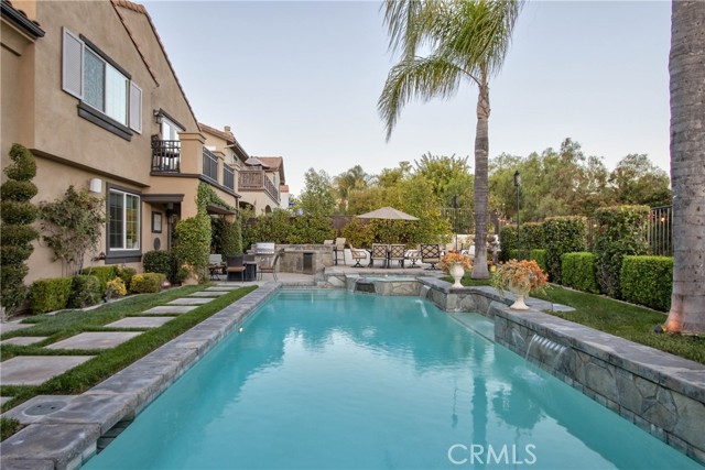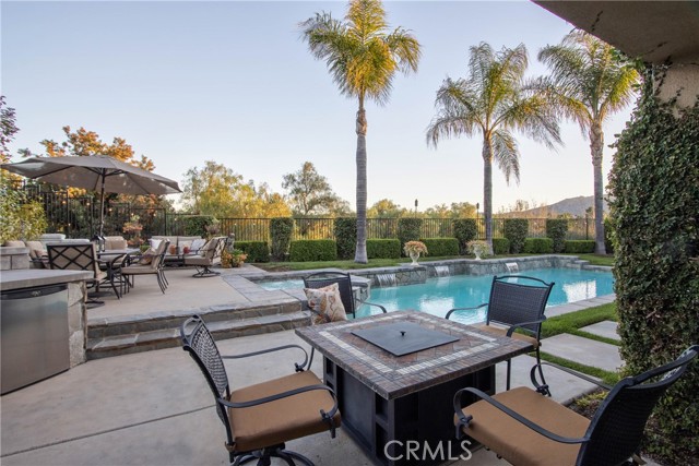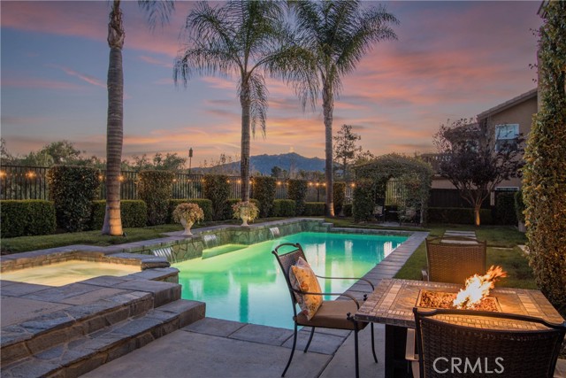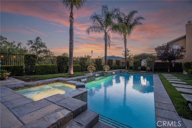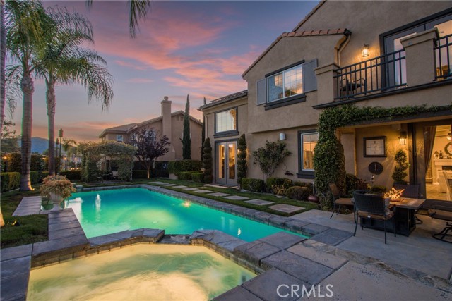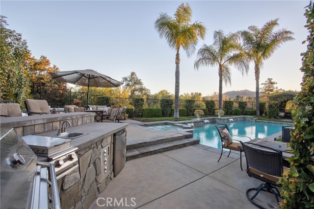 Welcome to the highly coveted gated community of the Fairways in Redhawk. This well appointed Italianate home has PAID SOLAR and no direct front facing neighbors and the back views to the third fairway of the Redhawk Community Golf Course and the beautiful Palomar Mountain. Enjoy cool backyard breezes due to the prime elevation of the home alignment to the Rainbow Gap. You will fall in love with the spacious and open floor plan. Step inside the glass wrought iron double doors to a grand formal entry and living/dining room with high volume ceilings. The heart of the home is the kitchen featuring a large center island, granite counter tops, glass mullion cabinetry, stainless steel dual ovens and a DCS 5 burner gas cooktop. The kitchen flows seamlessly into the open concept family room and informal dining room offering a fireplace and french doors that open to the back yard. The home has been highly upgraded with custom built in cabinetry throughout and designer touches. Surround sound speakers hardwired throughout most of the home interior and backyard with central volume controls which provide a great addition for holidays and entertainment. Delight in year round outdoor entertaining in the resort style backyard; with your own private saltwater pool, spa and a custom built outdoor kitchen featuring a natural gas barbecue, cooktop and refrigerator. The backyard has been landscaped to perfection with several areas to relax and enjoy the views. The interior of the home features 4 bedrooms and 3 bathrooms, including 1 bedroom/bath downstairs for multi generational living and an upstairs open loft. The primary bedroom suite is a true retreat with volume ceilings and a large private outdoor balcony. The spacious primary bath features a walk in closet and built in dresser for additional storage. Enjoy soaking in your large jacuzzi tub after a long day and the ample space provided in the large over sized built in dual bathroom vanity. The 3 car garage has been upgraded with epoxy coating and multiple cabinets. In addition, the home has been equipped with a central vacuum system throughout the home to make cleaning a delight.