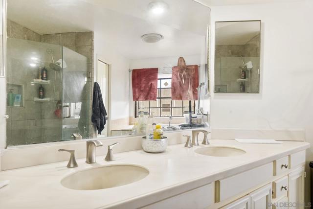 Welcome to 11034 Sagittarius – a truly exceptional multi-generational residence nestled in the vibrant heart of Mira Mesa! This expansive 5-bedroom, 3-bathroom home boasts fully paid-off solar panels and newer dual-pane windows. The first floor features a master en-suite and two additional bedrooms, while the second floor offers another master en-suite and a flexible bedroom/office space. The open-concept kitchen is equipped with stainless steel appliances and granite countertops, seamlessly flowing into an oversized dining room and living room. A separate family room, complete with a cozy fireplace, provides the perfect setting for family gatherings. Enjoy a prime location directly across from the park and in close proximity to the community pool. Centrally situated in Mira Mesa, this home offers convenient access to I-15, I-805, 163, and 56, ensuring short commute times. Experience the generous space and advantageous location this remarkable home has to offer.