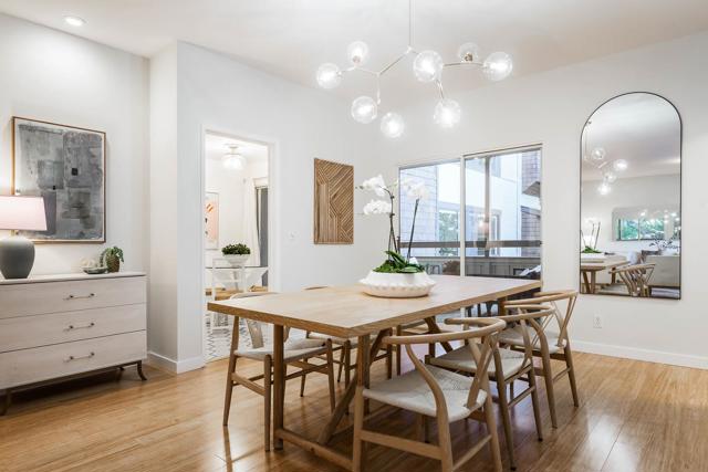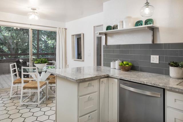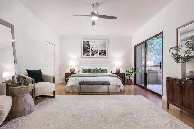 Beautifully remodeled condo within the gates of the Sharon Heights Golf and Country Club area. Conveniently located on the first floor above the garage with elevator access just outside the front door. This home is ideal for downsizing, starting out, or for use as a Silicon Valley pied-a- terre. Designer updates include bamboo floors, marble finishes, and contemporary lighting creating a refined and inviting atmosphere ready to move right in. The open floor plan features 2 bedrooms and 2 baths on opposite sides of the home, a central living room with gas-log fireplace and built-in bar, and a formal dining room with modern bubble glass chandelier. The remodeled kitchen with Carrara marble counters, peninsula seating, and breakfast area opens to an inviting loggia that serves as an outdoor living room, also accessed from the dining room and primary suite. In-unit laundry room, community pool and clubhouse, two-car garage with EV charging outlet, and access to excellent Las Lomitas schools. Minutes to Stanford University, Sand Hill Road venture capital centers, and Highway 280.