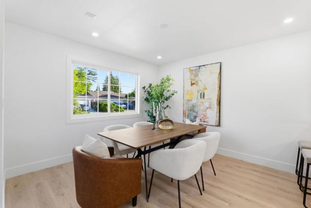 Showing starts tomorrow, 10/24 at 12 PM. Step through the beautifully landscaped front yard into this elegantly remodeled 4-bed, 2.5-bath home that perfectly blends modern design with everyday comfort. The entry opens to a bright, airy space illuminated by recessed lighting and centered around the warm glow of an electric fireplace, the perfect spot to unwind after a long day. At the heart of the home is a stunning kitchen, thoughtfully designed with quartz countertops, a matching backsplash, soft-close cabinetry, new stainless steel appliances, a built-in wine cooler, and a dedicated bar area, ideal for everyday cooking or effortless entertaining. Designer bathrooms feature LED mirrors and upscale finishes, adding a touch of luxury to your daily routine. Step outside to a spacious backyard retreat made for gatherings or quiet relaxation. Host summer barbecues under the gazebo, enjoy cozy nights by the firepit, or spend sunny afternoons on the swing set. A veggie garden and mature fruit trees complete this inviting space with natural shade for warm summer days. Located near top-rated schools, scenic parks, Mountain View amenities, and major highways, this home offers the best of Silicon Valley living with style, comfort, and convenience all in one. Come see it and make it yours!