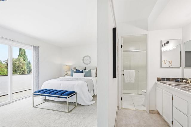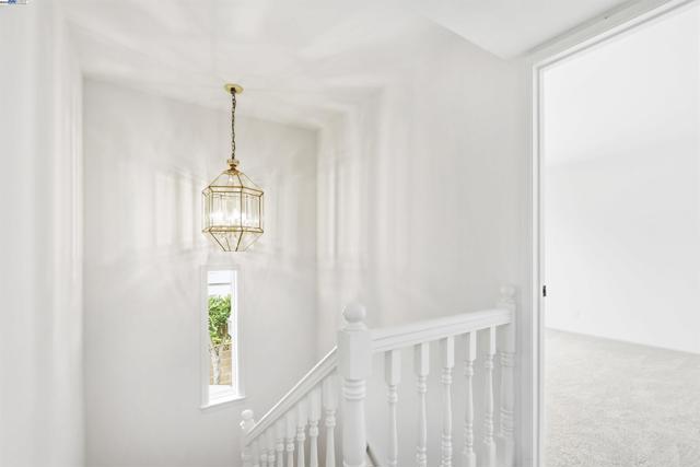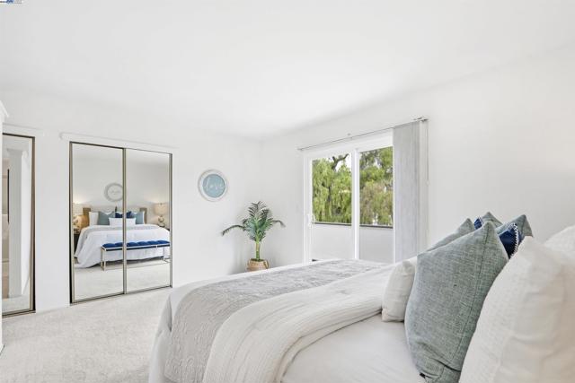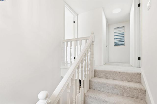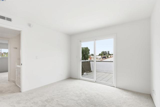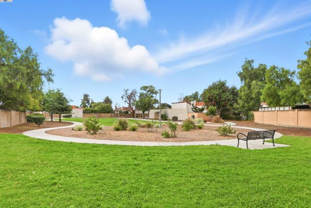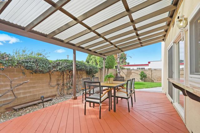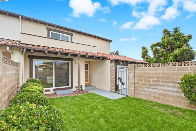 Introducing this timeless Spanish-style two-story home tucked away in the desirable Las Casitas neighborhood! This rare four-bedroom floor plan sits on a quiet cul-de-sac and is loaded with upgrades inside and out. The beautiful kitchen showcases granite counters, a tile backsplash, recessed lighting, ample counter space and a stainless steel refrigerator. Additional highlights include energy-efficient dual pane windows, laminate flooring downstairs, newly installed carpet upstairs, fresh interior paint, and a cozy fireplace. The spacious primary suite offers a large closet and a private balcony with views of the hills. Step outside to a generous backyard with a covered deck, lush lawn, storage shed, and mature fruit trees including orange, lemon, and pomegranate — perfect for entertaining or relaxing outdoors. Ideally located just a short walk to Plaza Park and minutes from 880, 680, the Dumbarton Bridge, Centerville Amtrak Station, and BART. Close to great schools, parks, local eateries, shopping, and entertainment — this home truly has it all!