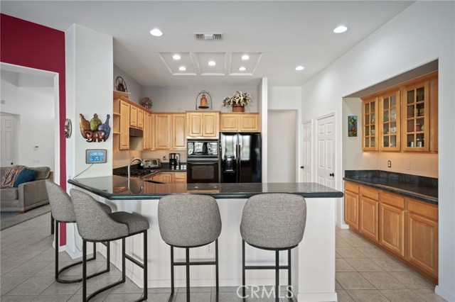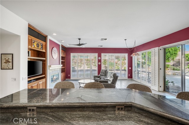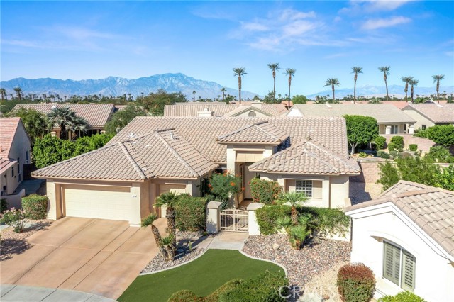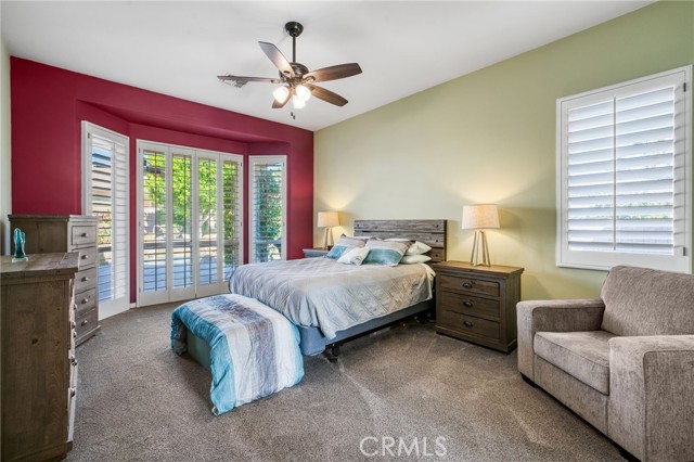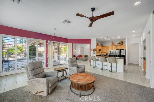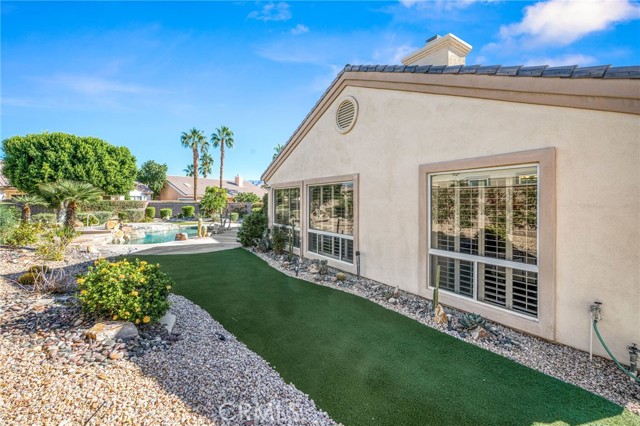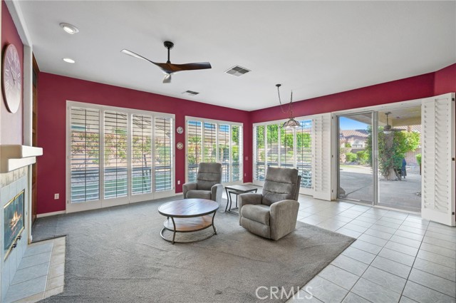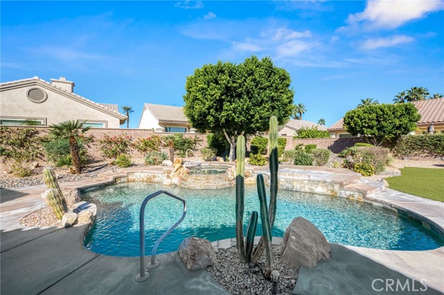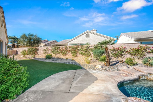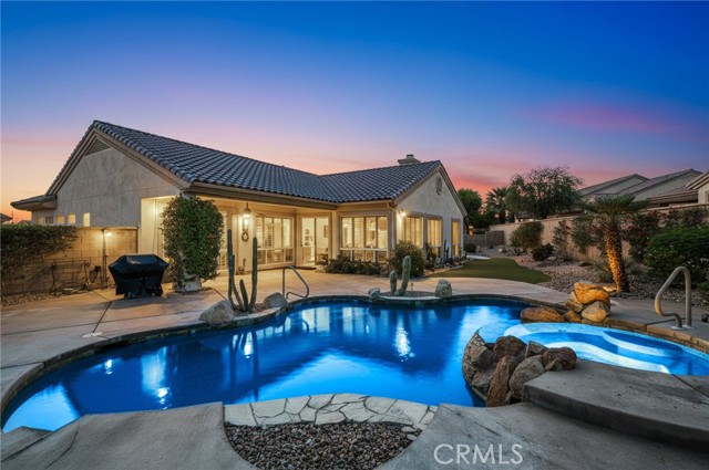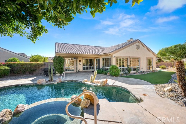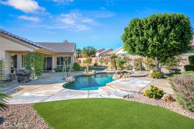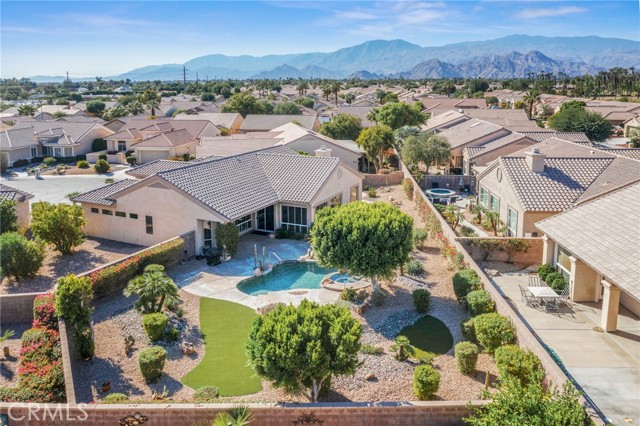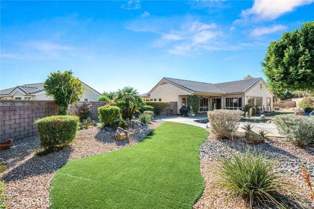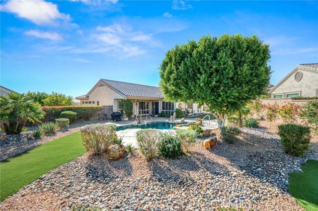 Seldom do you find a HOME in an Award Winning 55+ community with a backyard this BIG and this FUN. Situated on a quiet cul-de-sac, this private, low maintenance resort-style home sits on an exceptional 13,000+ square foot lot and West facing backyard. The 3 Bedroom, 3 Bath SAN REMO Estate Model is approximately 2,432 square feet, with a striking Pebble Tec pool and newly renovated waterfall Jacuzzi. The entire space is designed for enjoyment and relaxation, with a BBQ plumbed for natural gas, ceiling fans, covered patio, ambient night lighting, and areas that could be transformed into mini synthetic putting greens by sinking some cups into the green. Step into the house and the first thing you notice is the ample floor to ceiling windows with Plantation Shutters throughout, affording a view of the stunning backyard and providing ample light in the living spaces. The Kitchen features Granite counters, Gas burning cooktop, 2 Pantries and a Breakfast Bar. This Home has an open-concept design, with views from the Kitchen to the spacious Family Room, Formal Living Room and beyond to the Pool. There’s also a dedicated Dining Room that can easily seat your Thanksgiving guests and a sizable Inside Laundry Room with sink. The systems in this Home have been upgraded (2024) saving the inconvenience or the considerable expense of doing it yourself. They include a NEW Heating /AC system with a top-of-the line Air Filtration system plus 2 programmable thermostats and a NEW 50 gallon Water Heater with heat pump recirculation. The 2 car plus golf cart Garage has been refinished with LED lights, fully painted walls and ceiling, and an immaculate Epoxy floor. Years of good times and memories are waiting to be spent here in this exceptional HOME.
