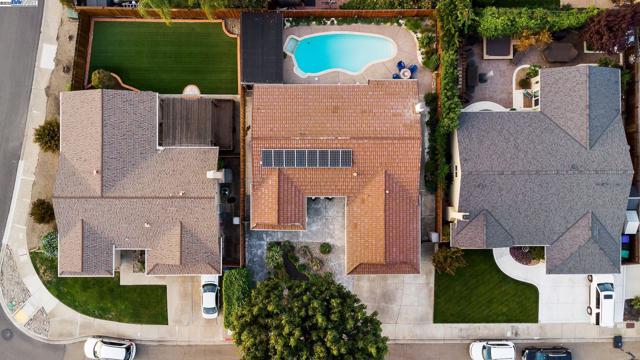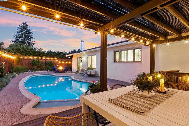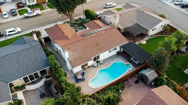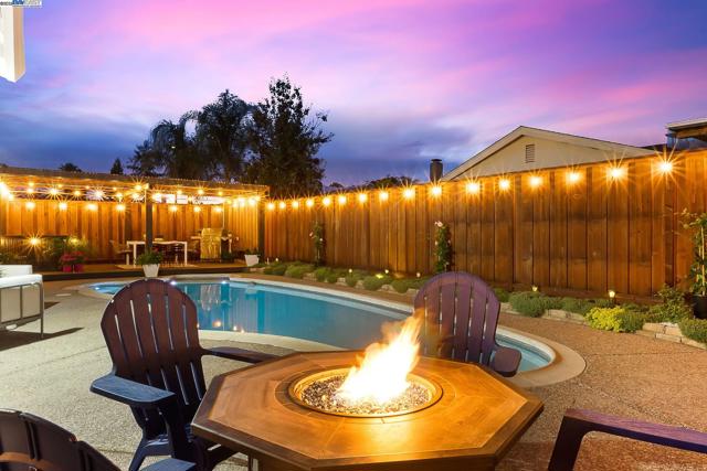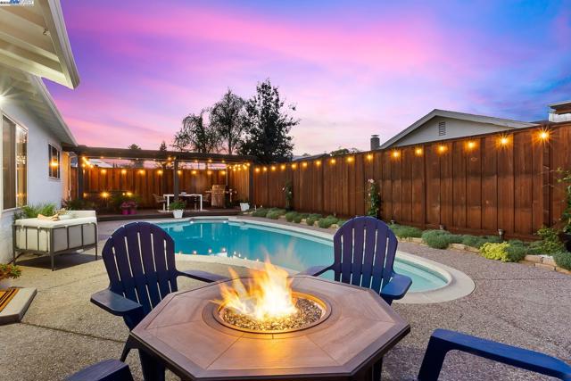 A home like no other! This recently updated single-story home offers the perfect blend of functionality and location, featuring new interior and exterior paint, updated bathrooms and owned solar. The heart of the home is the light-filled great room overlooking the backyard and sparkling pool. Vaulted open beam ceilings and a custom fireplace anchor the space while a dining nook and built-in storage provide functionality and form. Watch the hummingbirds in your garden from the spacious kitchen featuring granite countertops, tile backsplash, SS appliances and ample storage for the cook or baker. Primary suite features walk-in closet and updated bath with new vanity, quartz countertops, and shower. Three additional bedrooms and updated hall bath ensure room for everyone. The backyard is perfect for entertaining - host summer cookouts on your covered patio and take a dip in the solar-heated pool! Prime Pleasanton location close to top-rated schools, Val Vista park, dining/shopping, and downtown with easy access to I-680, I-580, ACE, and BART! Welcome home!