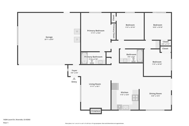 Charming Single-Story Home in the Desirable Woodcrest Area of Riverside. Located in the sought-after Woodcrest neighborhood, this inviting single-story home offers comfort, style, and beautiful views. A spacious driveway and attached garage provide ample parking. Inside, enjoy easy-care tile and laminate flooring throughout. The living room features a cozy fireplace and flows seamlessly into the open kitchen and dining areas—perfect for everyday living and entertaining. The kitchen is equipped with granite countertops, stainless steel appliances, and plenty of cabinet space. Down the hallway are four bedrooms and two bathrooms, including a primary suite with its own private en suite bath. French doors from the dining area open to a large, pergola-covered patio ideal for outdoor dining, lounging, and enjoying scenic views of the neighborhood’s mature trees and distant hills. A perfect blend of indoor comfort and outdoor relaxation in a great Riverside location.