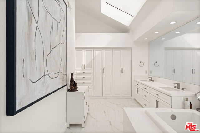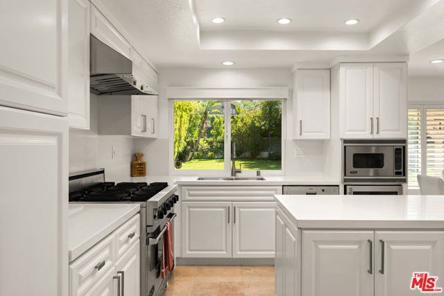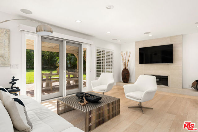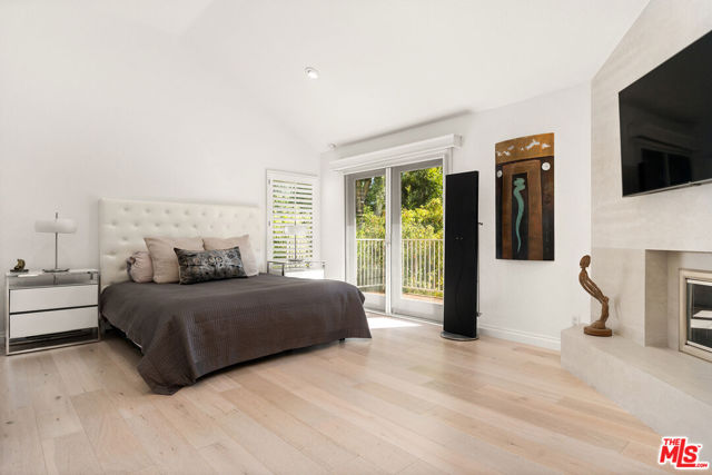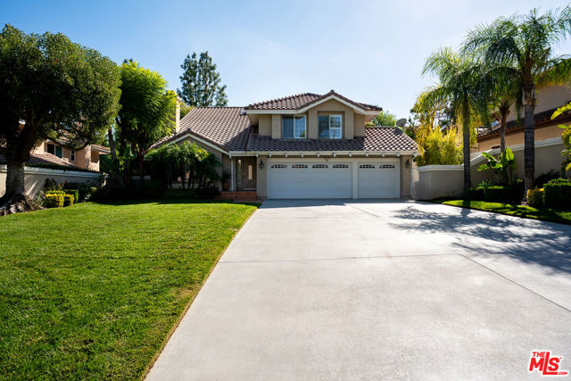 Welcome to Calabasas Hills Estates, an exclusive gated enclave in the heart of Calabasas. This beautifully upgraded 4-bedroom, 2.5-bath residence offers exceptional privacy, ample parking, and a spacious three-car garage. Set on a flat 12,186 sq ft lot surrounded by mature trees, the home combines timeless style with modern comfort. Impeccably maintained and thoughtfully renovated with premium finishes, the interior is filled with warmth and natural light. Upon entry, you're welcomed into a dramatic two-story living room with soaring ceilings, expansive picture windows, a gorgeous fireplace, and beautiful wood flooring that flows throughout. A stunning staircase serves as the home's centerpiece, while skylights throughout fill the space with soft, natural light. The bright kitchen features Viking appliances, sleek cabinetry, and a large island perfect for both everyday living and entertaining. A second living area adds versatility and additional square footage, complete with its own fireplace and seamless access to the spacious grassy yard and covered patio, ideal for outdoor dining and relaxation. Upstairs, the luxurious primary suite offers a spa-inspired bath, generous closets, a third fireplace, and a large private balcony overlooking the beautifully landscaped backyard. Additional highlights include plantation shutters throughout and a fully paid-off solar power system for exceptional energy efficiency. Ideally located just steps from Bay Laurel Elementary and minutes from The Commons at Calabasas, this light-filled home perfectly balances modern luxury, privacy, and an enviable location within one of Calabasas's most desirable gated communities.