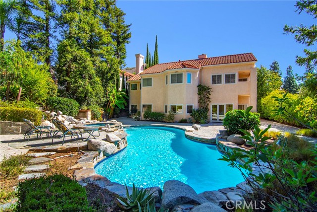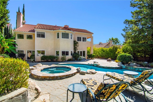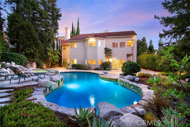 Experience elevated living in the highly sought-after Peacock Ridge community of Agoura Hills, where timeless design meets modern comfort in this stunning 4-bedroom, 4-bath residence. Offering expansive living spaces designed for both grand entertaining and everyday ease, this home embodies sophistication and relaxed California style. Step inside to soaring ceilings, warm hardwood floors, and open, sun-filled rooms that flow effortlessly for both daily living and gatherings. The chef’s kitchen serves as the centerpiece — featuring custom cabinetry, premium appliances, and a generous island that connects seamlessly to the family room and outdoor patio. A main-floor bedroom and full bath offer comfort and flexibility for guests, extended family, or home-office use. Upstairs, the primary suite feels like a private spa retreat with heated bathroom floors, a jetted soaking tub, walk-in shower, and custom built-ins, creating the ideal space to unwind. Additional bedrooms include refined finishes, abundant natural light, and versatile bonus space. The backyard is a true highlight — a private oasis with a sparkling resurfaced pool, spa, and multiple lounging areas surrounded by lush landscaping and peaceful views. Energy-efficient features include solar power, Texcoat exterior finish, and a high-efficiency HVAC system, ensuring year-round comfort and savings. A spacious 2-car garage provides convenience, storage, and direct interior access. Situated within the award-winning Las Virgenes Unified School District and just moments from Lake Lindero Golf Course, scenic trails, shopping, and dining, this exceptional home captures the essence of Agoura Hills luxury living — elegant, inviting, and move-in ready.