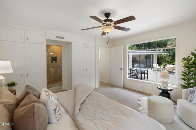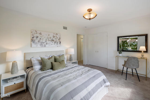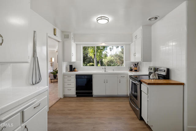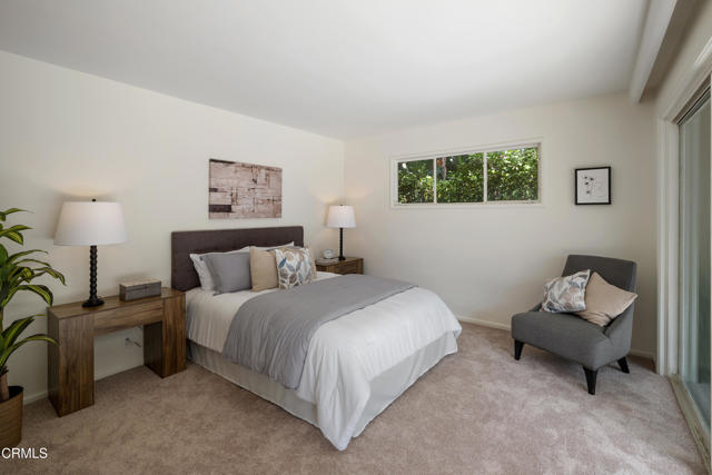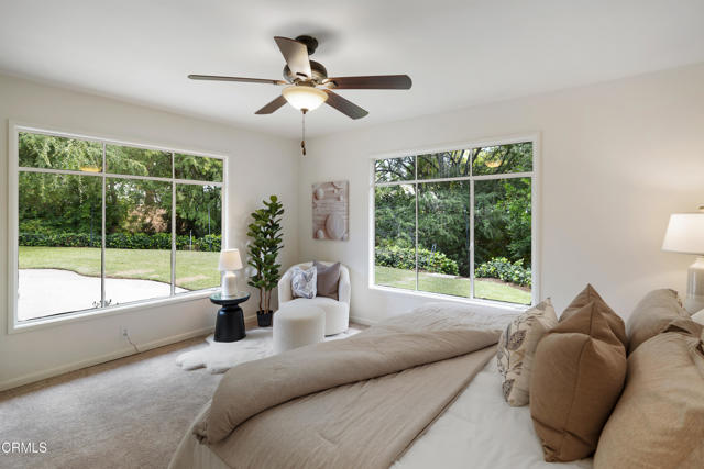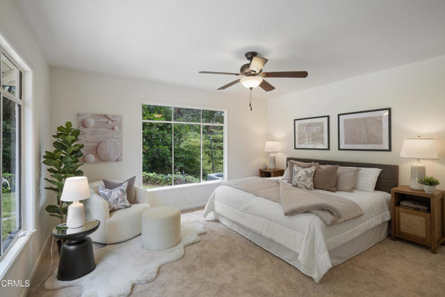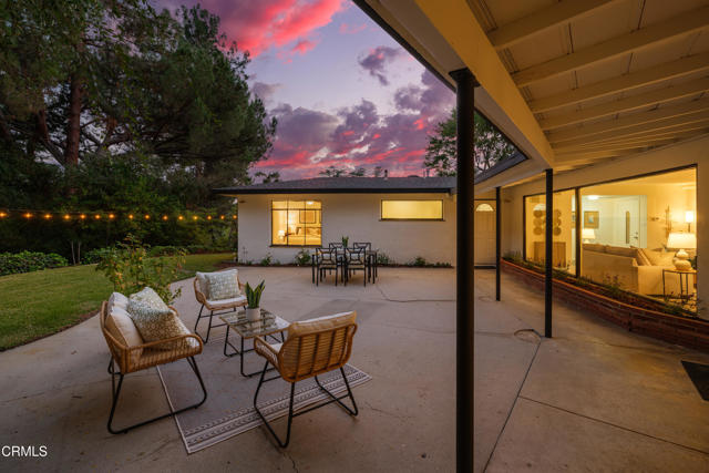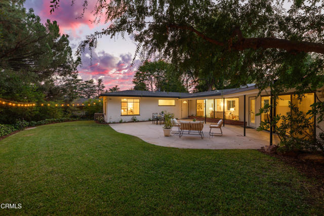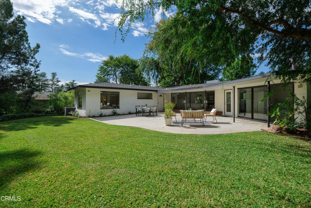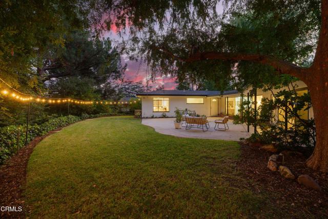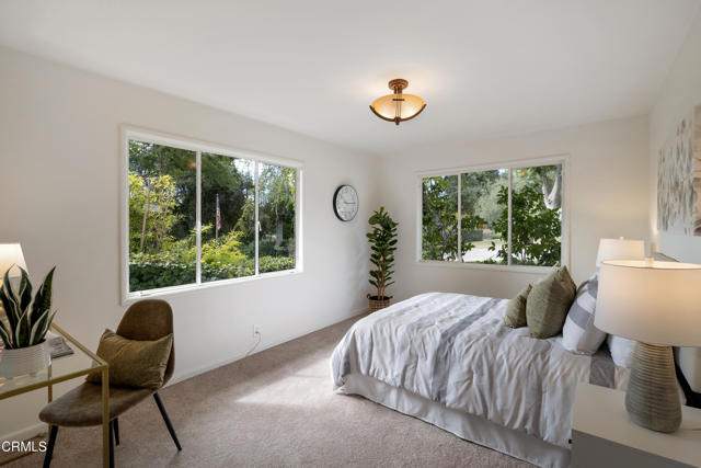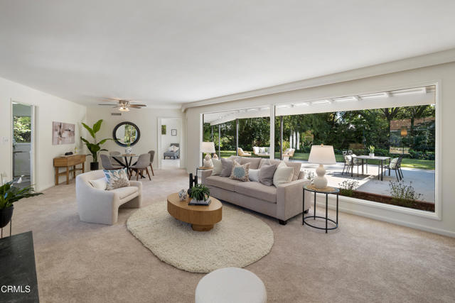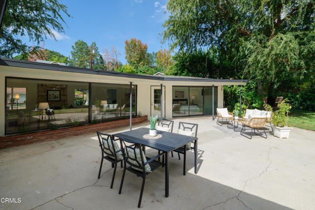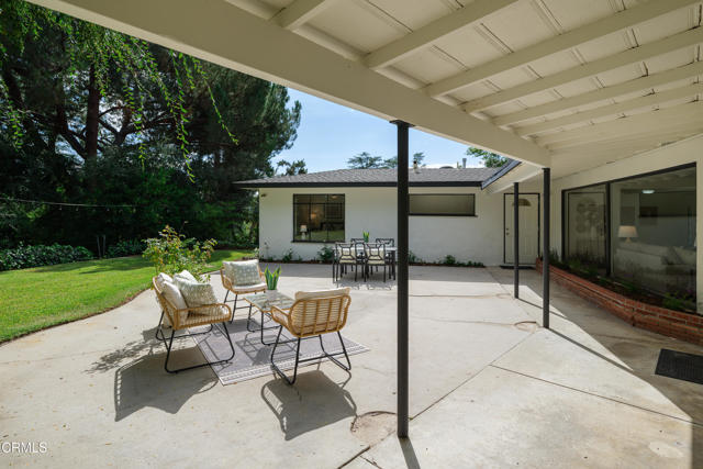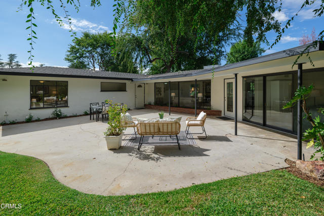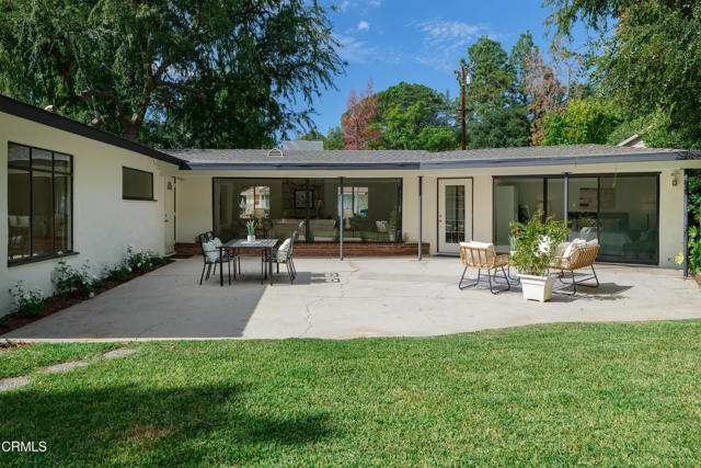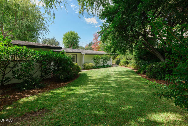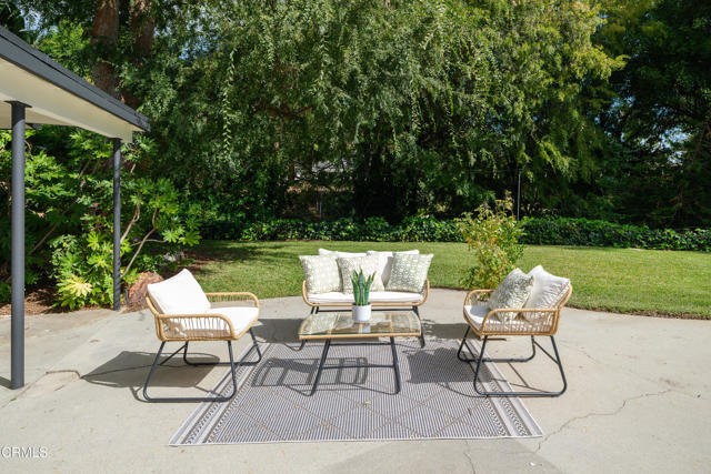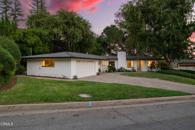 Tucked away on a peaceful cul-de-sac within one of La Canada Flintridge's most desirable neighborhoods, this inviting residence blends privacy, comfort, and timeless charm. Surrounded by an abundant landscape, the home welcomes you up a brick-paver driveway to a serene setting perfect for those seeking both tranquility and convenience. Inside, the bright and airy living room features a wall of windows overlooking the verdant backyard and patio. A flagstone hearth frames the gas fireplace, creating a warm focal point for gatherings. New carpet adds a fresh touch throughout, while the adjoining dining area offers seamless flow for entertaining. Next to the dining room, you will find the first of the 3 bedrooms this home offers. This versatile room could also be used as a den space or a convenient home office. The spacious kitchen boasts tile countertops, a five-burner electric range and oven, and a cozy breakfast nook. Just beyond lies a convenient laundry area, a quarter bath, and direct access to the attached two-car garage, as well as a back door leading to the patio and yard. Down the main hallway, you will find 2 bedrooms that offer comfort, an abundance of natural light, and ample closet space, while the hallway bathroom features dual sinks, recessed lighting, tile countertops, and a sunken tub/shower combination. The primary suite, situated at the rear of the home, enjoys tranquil views of the lush greenery throughout the backyard, new carpeting, a ceiling fan, and an updated ensuite bath with a quartz-topped vanity, tile flooring, and a glass-enclosed shower with a built-in bench seat. Out back, the expansive yard offers multiple spaces to unwind or entertain. A wrought-iron gate separates two distinct areas. The upper lawn area and a private lower patio enveloped by trees and mature landscaping, ideal for al fresco dining or quiet reflection. Set in a tranquil enclave yet moments from local trails, parks, and award-winning La Canada schools, this charming home offers a rare blend of seclusion, warmth, and opportunity in one of the area's most sought-after communities.