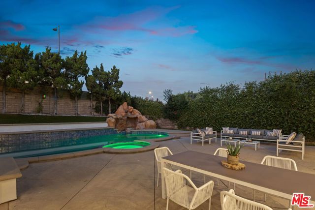Tucked away at the end of a tranquil cul-de-sac, this 5,453-square-foot residence captures the essence of modern luxury reimagined within a timeless traditional framework. Set on an expansive 11,380-square-foot lot, the home has undergone a meticulous, comprehensive renovation transforming it into a masterful blend of craftsmanship, comfort, and understated sophistication. Behind its stately facade lies a beautifully balanced floor plan curated for both grand entertaining and intimate everyday living. The formal living and dining rooms evoke a sense of occasion, while the great room anchored by a stunning new chef's kitchen flows effortlessly into the expansive family room overlooking the pool and gardens. The kitchen showcases custom cabinetry, quartz surfaces, and a suite of integrated Fisher & Paykel appliances, offering both elegance and performance in equal measure. Upstairs, the primary suite serves as a serene retreat, boasting generous proportions, spa-like amenities, and soft natural light. Four additional bedrooms complete the upper level, providing ample space for family or guests. Every bathroom throughout the home has been entirely reimagined, featuring refined finishes and timeless materials. Throughout, you'll find wide-plank white oak floors, freshly painted interiors, and a new roof testament to the home's turn-key condition. Step outside to discover the newly refinished Pebble Tec pool, set within a private backyard oasis perfect for entertaining under the California sun. Situated in one of Northridge's most desirable pockets, this cul-de-sac estate offers the rare combination of space, sophistication, and serenity an ideal sanctuary for the discerning family seeking the comforts of luxury living in the heart of the Valley.