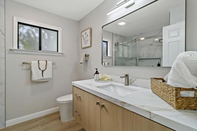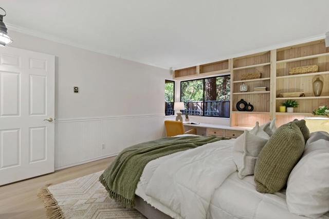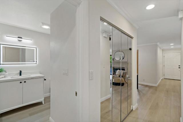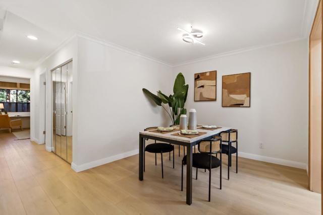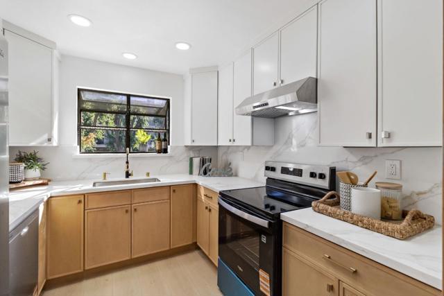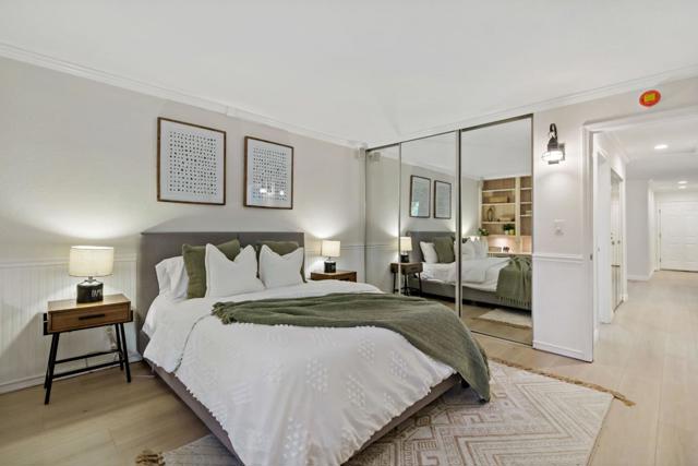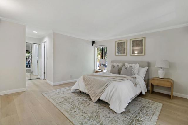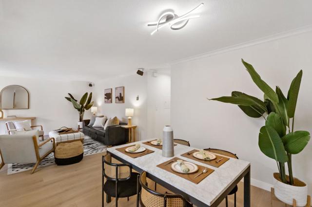 Totally renovated 2B/2B/2P 1191 sf end unit on one level with large front terrace and big backyard! Abundant natural light. Quiet and private with graceful trees lined up by the side and the back. New kitchen with garden window and SS appliances, oversized shower, new bathrooms, new flooring, freshly painted, crown molding, wired in speaker, built-in cabinets, recessed lighting, HOA fee covers hot water, pool, garbage, ample guest parkings-- Locating in heart of south bay with easy commute to Apple, Nvdia....
