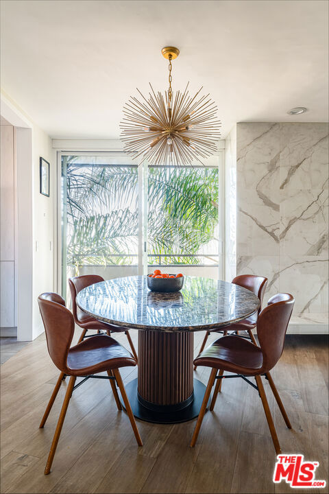 Experience quintessential West Hollywood living in this single-story 2-bedroom, 2-bath residence with panoramic views from DTLA to the West. Perched above the famed Sunset Strip, this newly renovated condo blends contemporary design with effortless sophistication. The open-concept living area showcases floor-to-ceiling glass sliders that frame sweeping vistas and flood the home with natural light. A stone-clad fireplace anchors the space, while wide-plank hardwood floors and a spacious private balcony create a seamless indoor-outdoor flow. The custom chef's kitchen features sleek quartz countertops, stainless steel appliances, and generous storage. An adjacent dining area and built-in bar with wine fridge elevate the home's entertaining appeal, doubling as a stylish coffee nook. The primary suite offers a true retreat with a custom walk-in closet and a spa-inspired bath featuring designer finishes. The versatile second bedroom, currently outfitted as an office with a convertible sleeper sofa, provides comfort and flexibility for guests or work-from-home living.Located in a boutique Mid-Century architectural building, this south-facing unit includes two parking spaces and direct access to the best of Los Angeles from the Pendry Residences to world-class dining, shopping, and nightlife just steps away on the Sunset Strip.