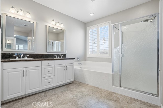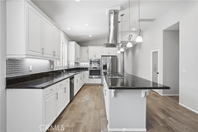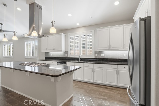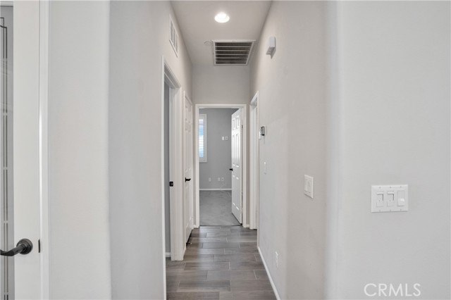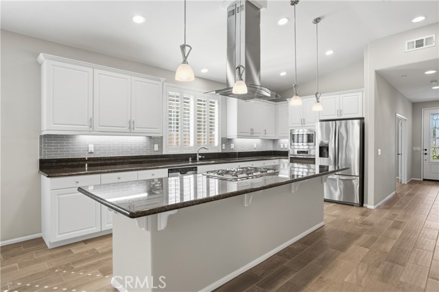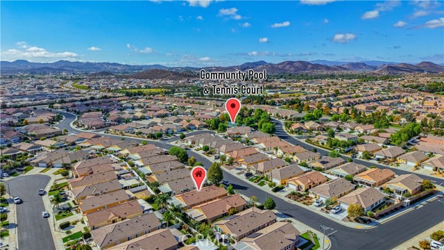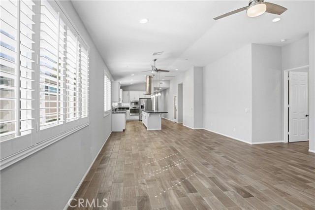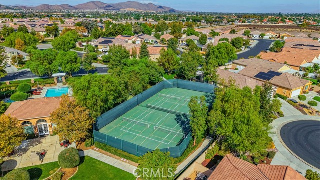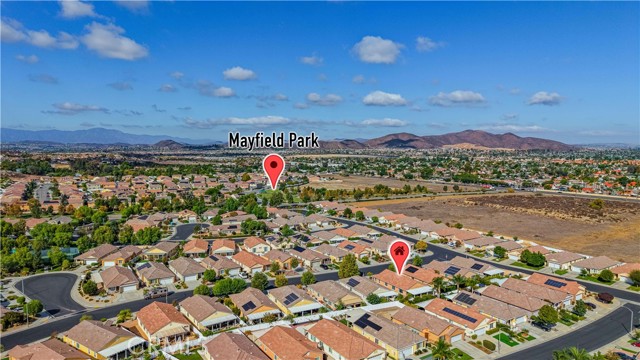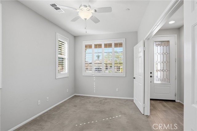 Gorgeous 2-bedroom, 2-bath home with a versatile Den that can easily convert into a 3rd bedroom. Offering 1,813 square feet of comfortable living space. Built in 2016, located in the desirable gated Orchid/Primrose 55+ Senior community at 30282 Silicate Dr., Menifee, CA 92584. This stunning home combines modern upgrades featuring; upgraded plank tile flooring in common areas, and cozy carpeting in the bedrooms, complemented by a Therma-Tru raised panel front door with decorative glass insert, and stylish two-tone gray flat finish paint. The Double door walled-in Den provides privacy for a home office or guest room. Other features are; indoor Laundry with utility sink, white Thermofoil cabinetry adding extra storage, and a clean look, plus newer Washer & Dryer included! Ceiling fans are installed throughout, and the home is pre-wired for flat-screen TVs. Wood shutters and dual-pane windows enhance comfort and energy efficiency. The great room, located just off the kitchen, features a beautiful indoor fireplace—creating a warm and inviting space perfect for relaxing or entertaining. The kitchen is a true centerpiece, featuring stainless steel appliances, white thermofoil cabinets, a custom backsplash, pendant lighting, a center island to include the range with gas cook top and vented hood, pull-outdrawers for pots and pans, and a frosted glass pantry door. The primary suite includes mirrored closet doors, recessed lighting with dimmer controls, framed mirrors, a silver aluminum stand up shower enclosure, separate soaking tub, and ADA-height toilets with privacy door. The exterior has been beautifully upgraded with a landscaped front yard featuring a custom walkway, wall planter, curb, decorative rock, shrubs, tree, and synthetic turf. The backyard offers low-maintenance enjoyment with synthetic turf, gravel, a drip irrigation system, aluminum rain gutters, and an alumawood patio cover with ceiling fans—perfect for relaxing or hosting gatherings. The two-car garage includes coach lights and fluorescent lighting, tankless water heater, side door to rear yard. This beautiful lot spans 5,227square feet with amazing curb appeal in one of Menifee’s most sought-after senior communities.