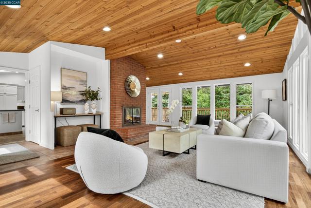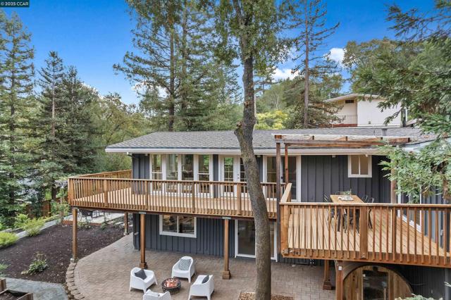 Welcome to 853 Revere Road, a spacious and light-filled retreat ideally set at the end of a quiet cul-de-sac in Lafayette’s sought-after Hidden Valley neighborhood. Just minutes from town, this 5-bedroom, 3-bathroom home offers 2,868 sq ft of mid-century style with soaring vaulted ceilings, walls of windows, and great indoor-outdoor flow. The updated kitchen features a center island, stainless steel appliances, and a smart layout that flows easily into the dining room—complete with direct access to the deck for effortless entertaining. The upper level includes three bedrooms and two bathrooms, including the primary suite. Downstairs, you’ll find two additional bedrooms, a full bath, and a spacious rumpus room that opens to the backyard. Set on a large, private lot, the yard is brimming with possibility—fruit trees, raised vegetable beds, and a standalone sauna offer a unique mix of utility and tranquility. Just minutes to downtown Lafayette and top-rated schools. This is the one. Open Sat 10/25 & Sun 10/26 1-4