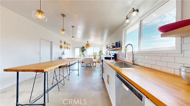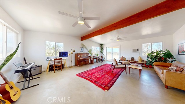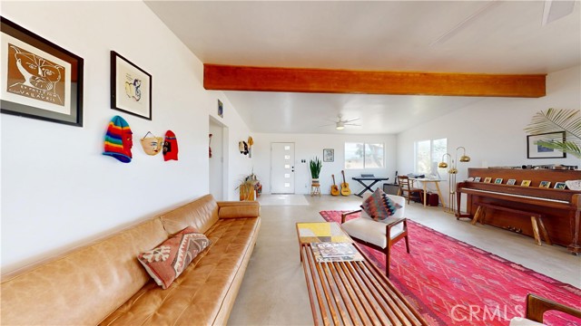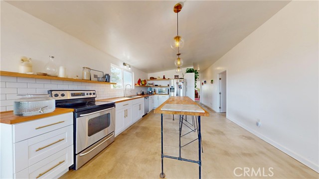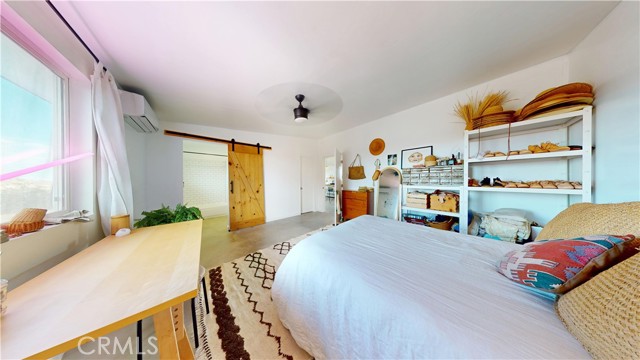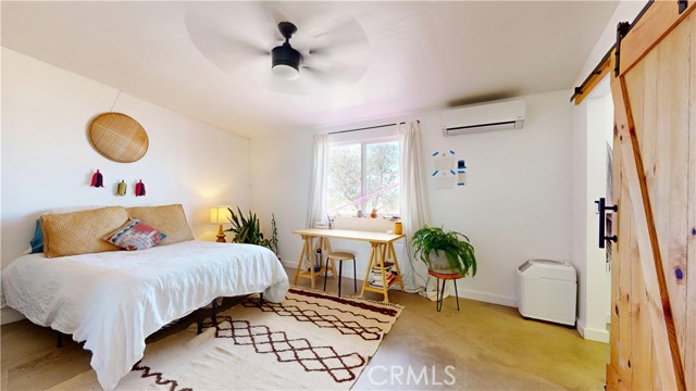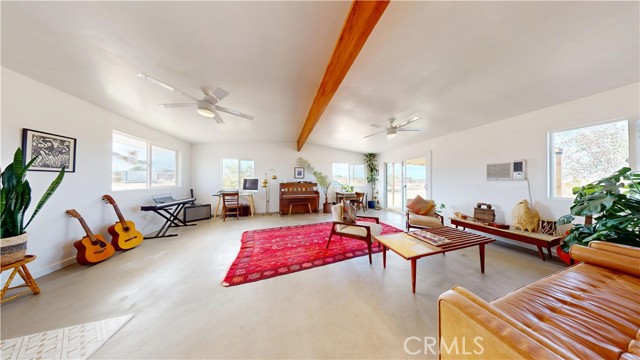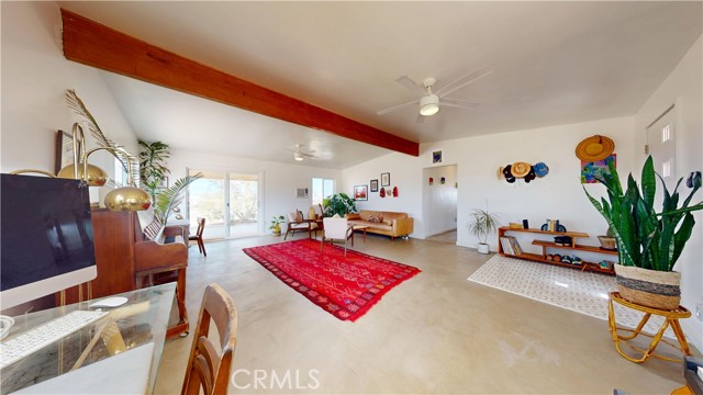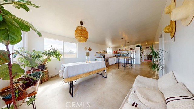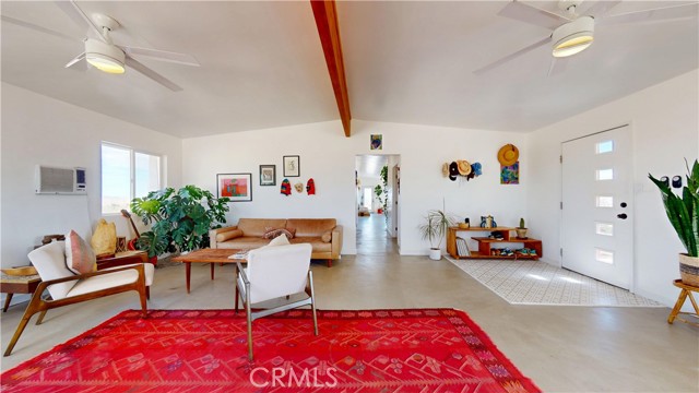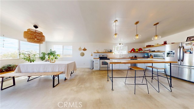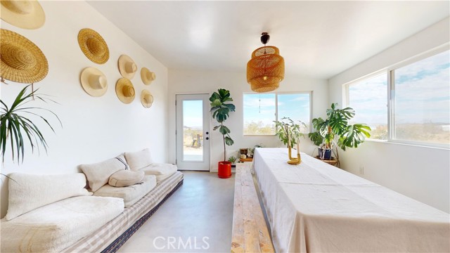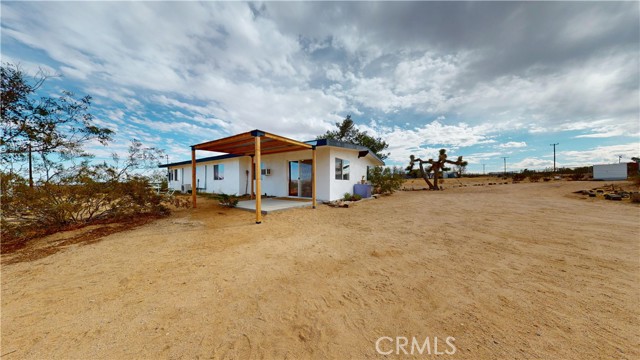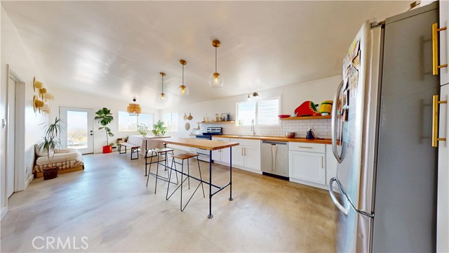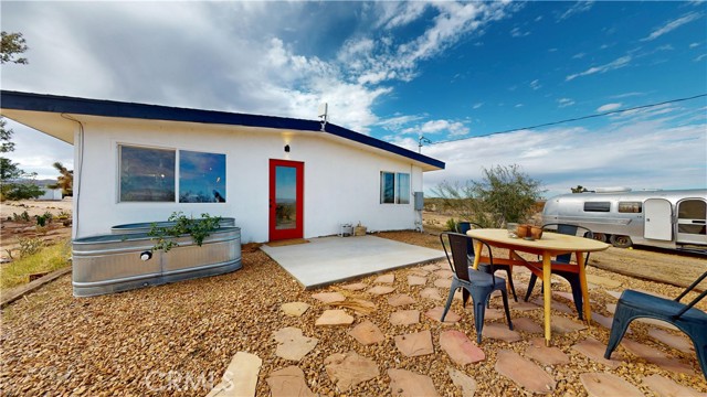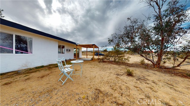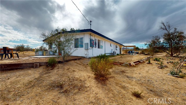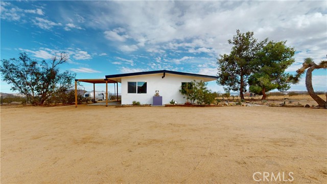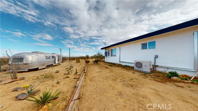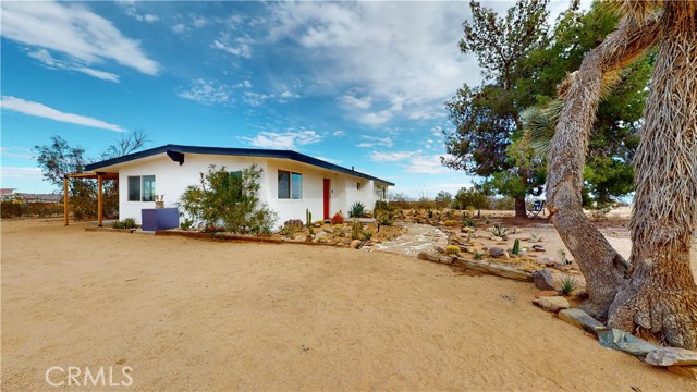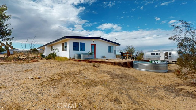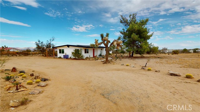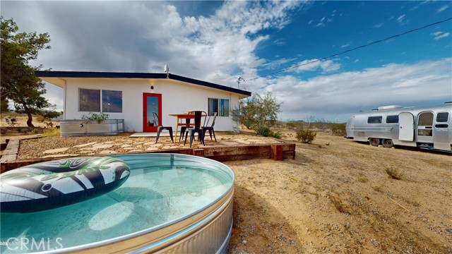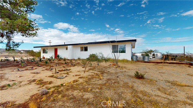 Landers at its finest. This beautiful home is the perfect desert getaway. 2 Bedrooms, 2 Bathrooms, and a roomy floorpan on 2.5 Acres. Step into the home on the new tile landing and notice the tons of natural light that fills the home. Outside the living room sliding glass door is a covered patio that is the perfect place to enjoy. Continuing through the home to the expansive kitchen you will see the concrete floors and wood accents of interior sliding doors, and wood countertops give the home a perfect modern desert feel. The kitchen with its large butcher block counter tops gives plenty of space for food preparation with natural light coming in through the window leading out to the expansive lot with beautiful desert views. The home is powered by an owned solar system that produces enough power for the entire home. Ductless air conditioning and heat provide comfort throughout the year. Spacious bedrooms allow for comfortable accommodations with the primary having a full on suite bathroom. Enjoy the outdoors with the beautiful cactus garden or cool off in the cowboy tub outside the dining area. Property has been rented as a short term rental in the past with significant earnings, can be purchased fully furnished with all appliances turn key. Make this home yours and call to set up a showing.
