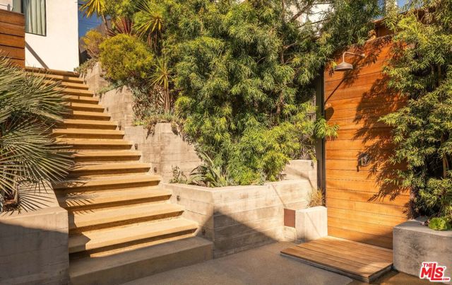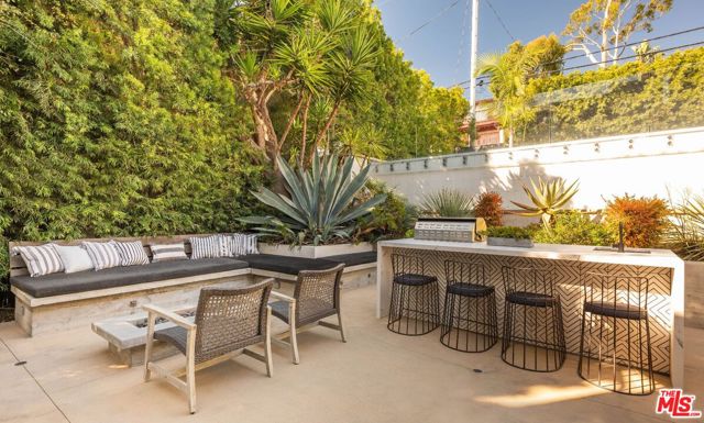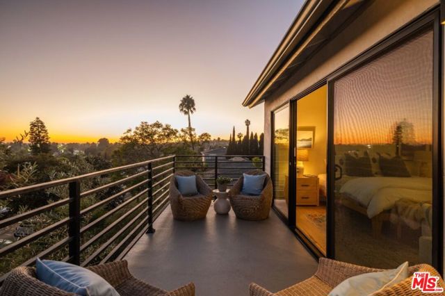 In the heart of Mar Vista, moments from Santa Monica's coastline, the Beethoven Market, and the vibrant dining of Venice Boulevard and Abbot Kinney, this modern architectural home captures the ease and sophistication of coastal California living. The open floor plan connects a sunken family room with tiled fireplace, a second living area, a formal dining space, and a wet bar with wine fridge. The gourmet kitchen, anchored by a marble island and stainless steel appliances, is ideal for both daily living and entertaining. Upstairs, the primary suite offers high ceilings, a spa-like bathroom, walk-in closet, and private balcony with ocean views. A second ensuite bedroom, two storage closets, and a laundry closet complete the level. Crowning the home is a spacious rooftop deck showcasing panoramic ocean and marina views, an ideal setting for sunset gatherings. The backyard is a private oasis with a fire pit, outdoor shower, and chef's kitchen with BBQ and fridge. Exterior stairs lead to an upper terrace with a 25' x 25' saltwater infinity pool, spa, and dining deck surrounded by lush greenery. Completing the property is a versatile two-car garage that can easily function as a pool room, creative studio, or home office, enhancing the home's adaptability to any lifestyle.