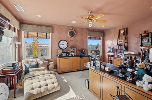 Located in the prestigious 24-hour guard-gated community of Santa Lucia, this expansive 4-bedroom, 4.5-bath residence offers 3,937 sq. ft. of living space, with vaulted ceilings and impressive canyon views that create a light, open atmosphere. The layout provides a strong foundation for personalization. The kitchen and breakfast nook open directly to the family room and capture canyon views, creating a practical, connected living space. The home features a substantial primary suite with a fireplace, a sitting room, and a private ocean-view terrace. The primary bathroom is light, bright, and spacious, featuring a soaking tub, oversized walk-in shower, double vanities, and a walk-in closet. All bedrooms are en suite, and a downstairs bedroom suite provides flexibility for guests or multi-generational living. A dedicated office with built-ins offers additional flexibility for work or study. Throughout the home, there is generous cabinetry and storage space along with a three-car garage. The Santa Lucia community features resort-style amenities, including a saltwater pool, clubhouse, and scenic nature trails. Nearby are award-winning schools, world-class shopping, dining, and the beaches of Newport and Crystal Cove. This property presents an exceptional opportunity to reimagine the space and create something truly your own in one of Newport Coast’s most sought-after neighborhoods.