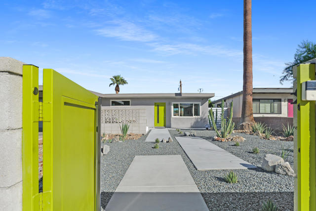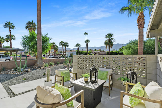 2020 Lawrence Street is a stunning mid-century modern retreat nestled in the heart of South-East Palm Springs, where iconic design meets modern efficiency. Set on fee-simple land with no HOA, this 2-bedroom, 2-bath home is meticulously maintained and offers panoramic views of both the San Jacinto and Little San Bernardino Mountains. Just minutes from downtown Palm Springs, the home is ideally located near Tahquitz Creek Golf Resort, a 36-hole public course known for its walkability and scenic fairways. It also sits near the newly completed CV Link, a multi-use trail system offering bike, golf cart, and pedestrian access across the Coachella Valley--making it easy to explore the city in sustainable style.The exterior of the property is designed for ultimate relaxation and desert enjoyment, featuring multiple seating areas, native desert landscaping, and a resort-style Pebble Tec saltwater pool accented with shade sails, fountains, and custom lighting. At the center of it all is a built-in firepit, ideal for evening gatherings under the stars. Inside, the open-concept floor plan is drenched in natural light, with sleek porcelain tile flooring throughout and seamless access to the backyard through oversized sliders that blur the lines between indoor and outdoor living.Both bedrooms are ensuite, each with its own beautifully updated modern bathroom, while a separate utility room with washer and dryer offers added functionality. Recent upgrades make this home as efficient as it is stylish, including a high-efficiency HVAC system, dual-pane low-energy windows, extra insulation for comfort and soundproofing, and a polyurethane foam roof for long-lasting durability and energy savings.The home also features covered and gated parking for two vehicles, guest parking, and a 10x12 storage shed, perfect for bikes, tools, or seasonal items. Whether you're a golf enthusiast, an outdoor lover eager to explore the CV Link, or simply looking for a move-in-ready property with mid-century soul and modern performance, 2020 Lawrence delivers the full Palm Springs experience.