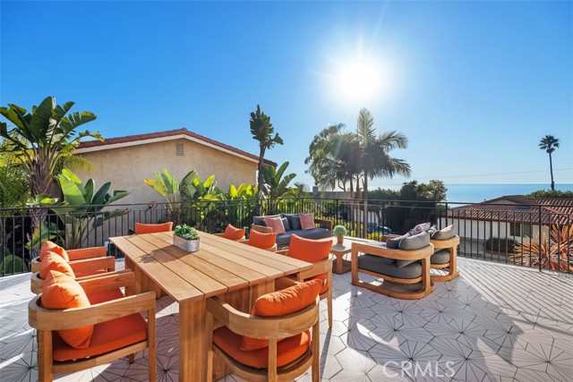 Welcome to 2870 Zell Drive, a beautifully detailed coastal retreat in Laguna Beach’s highly desired Top of the World neighborhood. Positioned to capture ocean, Catalina, and sunset views, this home offers the perfect blend of relaxed comfort and timeless charm. The main level features an open-concept layout with chevron-patterned hardwood floors, a statement fireplace, and a floor-to-ceiling glass-enclosed wine display. The chef’s kitchen includes Thermador stainless-steel appliances, a built-in refrigerator, walk-in pantry, and a center island, all opening to the dinning and family room plus a spacious front patio ideal for indoor-outdoor entertaining. Upstairs, the primary suite showcases ocean and sunset views, a private balcony, and a spa-inspired bath with a free-standing soaking tub and designer finishes. Two additional bedrooms and a full bath complete the second level, along with an expansive ocean-view deck featuring a built-in wet bar and generous lounge space for outdoor dining and enjoying coastal sunsets. Located minutes from Laguna’s award-winning schools, hiking trails, and world-class beaches, this residence captures the essence of modern coastal living in one of the area’s most sought-after enclaves.