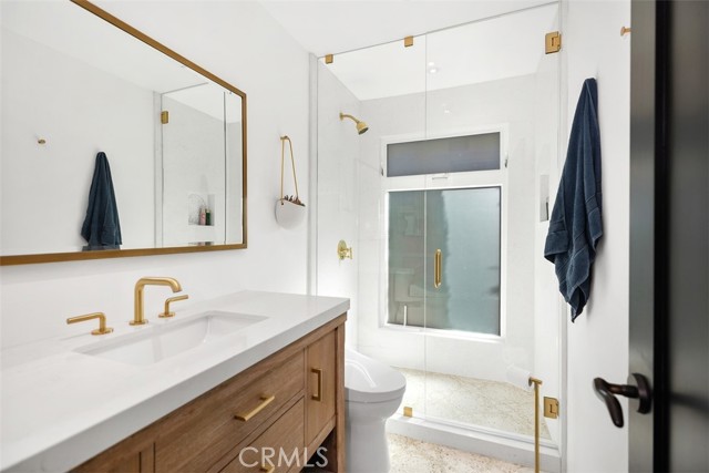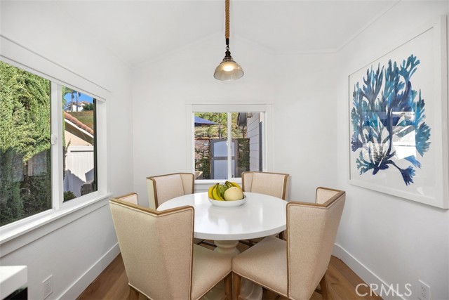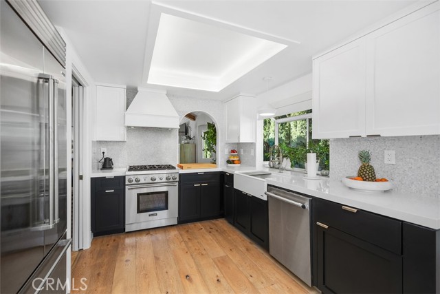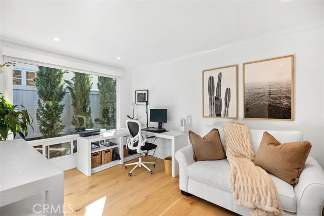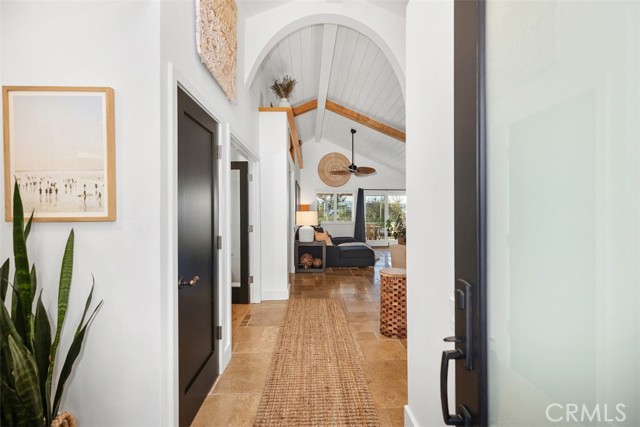 Experience timeless style and modern comfort in this beautifully remodeled residence, thoughtfully curated with luxury materials and exceptional craftsmanship. Hardwood and marble flooring flow throughout, with French white oak in the kitchen, American white oak in the office and owner’s suite, and natural travertine in the living and entry areas. The fully renovated kitchen features custom cabinetry, quartz countertops, a RO water filtration system, Sub-Zero refrigerator, Thermador range and dishwasher, and a sleek undermount sink. Both bathrooms showcase exquisite finishes, the owner’s bath with slate porcelain flooring and an Emperador marble shower enclosure, and the guest bath with Italian mosaic Carrara marble flooring and a quartz slab shower surround. Upgrades include a Culligan whole-house water treatment system, PEX plumbing, newer windows and French doors, solid brass door hardware and air vent covers, custom lighting, and designer fixtures throughout. Exterior enhancements feature a redesigned entry courtyard with concrete walkways, built-in planters, a privacy wall with security gate, and a backyard patio extension framed by a full-length privacy wall with ¾" glass—perfect for enjoying amazing sunset views. Italian cypress and lush perennial plantings add natural beauty and year-round color. Located in the desirable Rancho Niguel community with access to The Club at Rancho Niguel, offering tennis courts, pickleball courts, swimming pools, a gym, racquetball courts, clubhouse, and more. This exceptional home offers a rare blend of artisan detail, refined upgrades, and enduring quality, perfect for those seeking elevated coastal-close living.