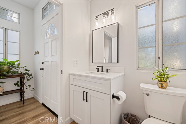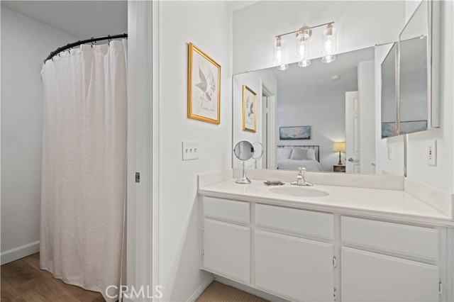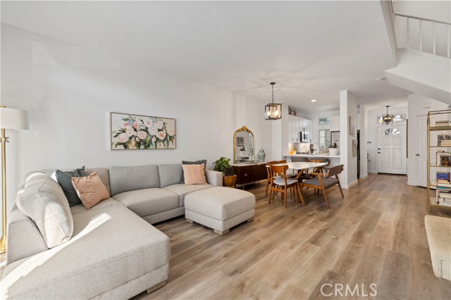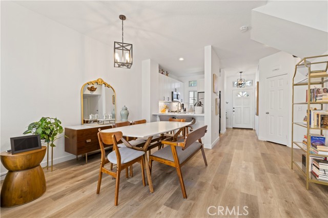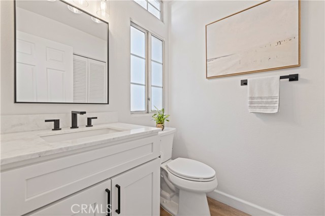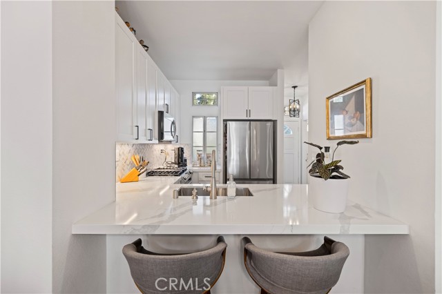 Tucked inside the gated community of Bridgeport Terrace, this stylish two-story townhome offers modern updates and a prime Laguna Niguel location. The neighborhood features just 48 residences surrounded by well-manicured landscaping and peaceful greenbelts. This 2-bedroom, 2.5-bath home with direct-access garage entry showcases 9-foot ceilings and a beautifully remodeled interior. The kitchen boasts white shaker cabinetry with soft-close doors, Calacatta Leon quartz countertops, a chevron glass backsplash, under-cabinet lighting, matte black hardware, and stainless steel appliances. The main level features luxury vinyl plank flooring, tall baseboards, and upgraded lighting, including a matte black chandelier in the dining area and a coordinating stairwell sconce. The living room centers around a cozy wood-burning fireplace and opens to a private patio with white vinyl fencing and direct access to the greenbelt, perfect for relaxing or entertaining. Upstairs, you’ll find two spacious primary suites, each offering its own ensuite bath and sizeable walk-in closet. A convenient main-level powder room and interior laundry area complete the home’s layout. Plus, there is an additional assigned parking space tucked conveniently behind the unit. Bridgeport Terrace residents enjoy gated access, a community pool and spa, plus BBQ and picnic areas. HOA dues cover basic AT&T cable, trash service, exterior maintenance, landscaping, and structure insurance. FHA and VA approved. Conveniently located near the 73 Toll Road, I-5, local shopping, dining, entertainment, Saddleback College, and just a short drive to beaches and Dana Point Harbor.
