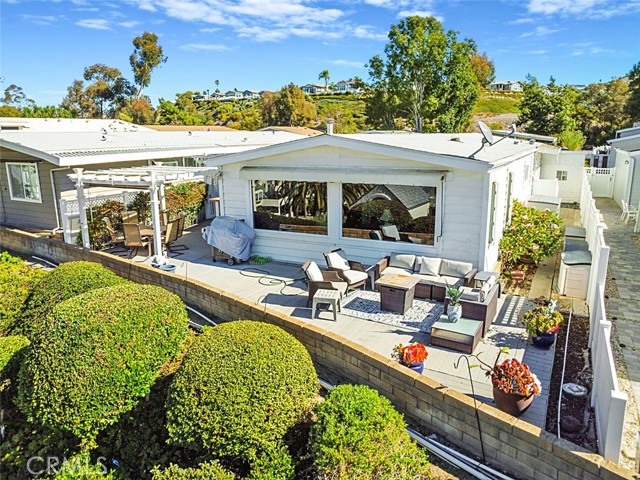 Beautiful Coastal home minutes from the San Clemente coast line!! BEST DEAL IN THE AREA!! One of the most beautiful places to live in Orange County filled with beautiful beaches, restaurants, shopping & the pier is just minutes away! This oasis is a spacious 2 Bedroom/2 Bath with sprawling views of the canyons & minutes from the beach. Shorecliffs Terrace is an amazing 55+ community set on a beautiful golf course with breathtaking skyline views of the ocean all throughout. THE BEST PART IS YOU OWN THE LAND!!! There is NO LEASE ON THE LAND and it has all the amenities you could want! There is a fun clubhouse, which regularly holds events for the resident, as well as their friends & family that range from arts & crafts to dancing & many other community activities or events. The incredible amenities also include a pool, jacuzzi, gym, ping pong tables, pool tables, lounge areas, a ball room, & an RV lot. The home has an amazing great room that lights up the house as you enter & connects flowingly to a large dining room with a built-in fireplace. There is a large kitchen with marble counter tops & an ample amount of cabinets for plenty of storage. The primary suite is very spacious & has a double wide closet as well as an attached private bathroom & the secondary guest room has plenty of space for any use & includes an attached bathroom as well. The laundry room includes a washer & dryer & there is parking for 2 cars comfortably in the car port. There is also a bonus storage room next to the car port for all your storage needs. The outdoor deck was recently upgraded & provides the perfect space for relaxing or entertaining with amazing views. It also has a remotely retractable patio cover that can be used for covering the deck on a hot/rainy day or retracting it to enjoy the full view when desired! Call today to schedule a viewing! This one won’t last!!!