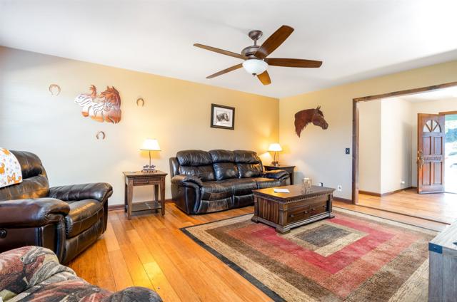 Nestled on an expansive, fully fenced parcel in the hills of Ramona, this beautifully updated multi-unit equestrian property offers an exceptional blend of comfort, functionality, and income potential. Designed with a thoughtful layout that accommodates privacy and versatility, the property features distinct living quarters accentuated by vaulted ceilings, abundant natural light, and sweeping views of the surrounding countryside. Recent upgrades include a chef’s kitchen with elegant quartz countertops, stainless appliances, and custom cabinetry, along with designer-finished bathrooms and hardwood-style flooring. Each home is equipped with 14 owned solar panels, providing energy efficiency and long-term savings. For equestrian enthusiasts, the property is ideally equipped with a 4-stall Barnmaster barn, cross fencing, and ample open space for horses, training, and riding activities. In addition, there is a 1,500 sq. ft. Barnmaster shop building, perfect for equipment storage, a workshop, or additional hobby space. These features make it perfectly suited for those seeking a peaceful country lifestyle with modern amenities and well-planned equestrian facilities. The property also boasts a stunning ADU, thoughtfully designed with the same attention to detail—ideal for guests, extended family, or rental income. Outside, the generous grounds include mature landscaping, a covered patio perfect for alfresco dining or entertaining, and a separate yard area for recreation or relaxation. Situated on a quiet country lane yet conveniently close to town amenities, this offering stand