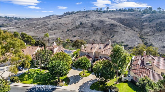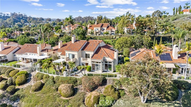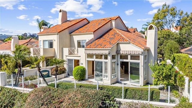 RESORT STYLE LIVING at its finest in the gated community of Siena in Marina Hills. This home is in an incredible location within the community. The private courtyard with a gentle water feature offers a warm welcome. Beautiful, PANORAMIC canyon views greet you as you enter through double doors. Soaring ceilings, abundant natural light and open floor plan blend indoor comfort with outdoor beauty. This 3-bedroom home includes a convenient downstairs bedroom or office and a full bathroom with a walk-in shower. The light-filled living and dining areas flow into the gourmet kitchen with lovely, stone backsplash, an abundance of cabinetry and stainless steel appliances, including a double oven and 5-burner cooktop. Upstairs, the primary suite is a serene retreat with stunning canyon and hillside views enjoyed from inside or from the private balcony. The spa-inspired bathroom features quartz countertops, dual vanities, walk-in shower, a freestanding soaking tub, along with upgraded mirrors and lighting. Closets are beautifully organized with custom built-ins. A spacious, secondary bedroom includes high ceilings, an en suite bathroom and custom closet drawers. The backyard offers resort-like tranquility with sweeping canyon vistas and soothing fountain. The expansive patio is perfect for entertaining, dining al fresco or simply enjoying the sunshine in peace and privacy. Additional highlights include: PEX repiping, inside laundry room with sink, plantation shutters, garage built-ins and a location which provides plenty of parking for guests. Residents of Siena enjoy access to a private pool and spa as well as full use of Marina Hills amenities including an Olympic-size pool, clubhouse, tennis and pickleball courts, bocce ball courts and beautifully maintained parks. Nearby walking, hiking and biking trails lead directly to the world-renowned Salt Creek Beach. Don’t miss the opportunity to call this exceptional property your new home!