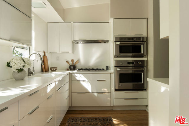 Mid-Century Modern gem in prestigious Encino Village Designed by renowned architect Martin Stern, AIA. Located in the highly sought-after Encino Elementary School district, this beautifully updated 4-bedroom, 3-bath home features one of the most desirable and spacious floor plans in Encino Village. Thoughtfully renovated for today's lifestyle, it blends modern finishes with timeless mid-century design elements. Inside, you'll find hardwood floors throughout, dramatic open-beam vaulted ceilings, and a classic floor-to-ceiling mid-century fireplace. The versatile den is perfect as a home office or creative space. The remodeled kitchen boasts custom Corian countertops with integrated dual sinks, soft-close drawers, and premium stainless steel appliances including a GE Monogram Advantium microwave with convection, Monogram oven, and Bosch dishwasher. All bedrooms feature vaulted ceilings and hardwood flooring. A newly added, fully permitted primary bathroom offers spa-like luxury with a quadruple-head Kohler Smart Shower with steam, dual vanities, and a private water closet. Outside, enjoy lush yet low-maintenance landscaping with an eco-friendly drip system as well as orange, lemon and peach trees. The 15-foot "X500" swim spa from Endless Pools is ideal for relaxing year-roundwhether on warm summer days or cool winter nights. Additional highlights include: Custom Milgard aluminum windows that replicate the original 1950s style, Copper plumbing, updated HVAC with whole-house air filtration, 200-amp electrical panel and an attached two-car garage with built-in storage and workshop. Situated just moments from the park with access to playgrounds, tennis courts, soccer and baseball fields and a community center. Nearby bike paths lead to scenic Lake Balboa. Minutes from the 101 and 405 freeways, Encino Village is an idyllic neighborhood known for its strong sense of community and regular block parties.
